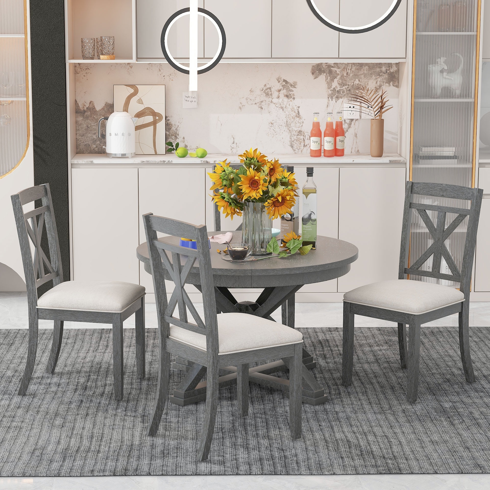 47.2'' Modern 5-piece Extendable Wood Drop Leaves Dining Table Set with Upholstered Chairs