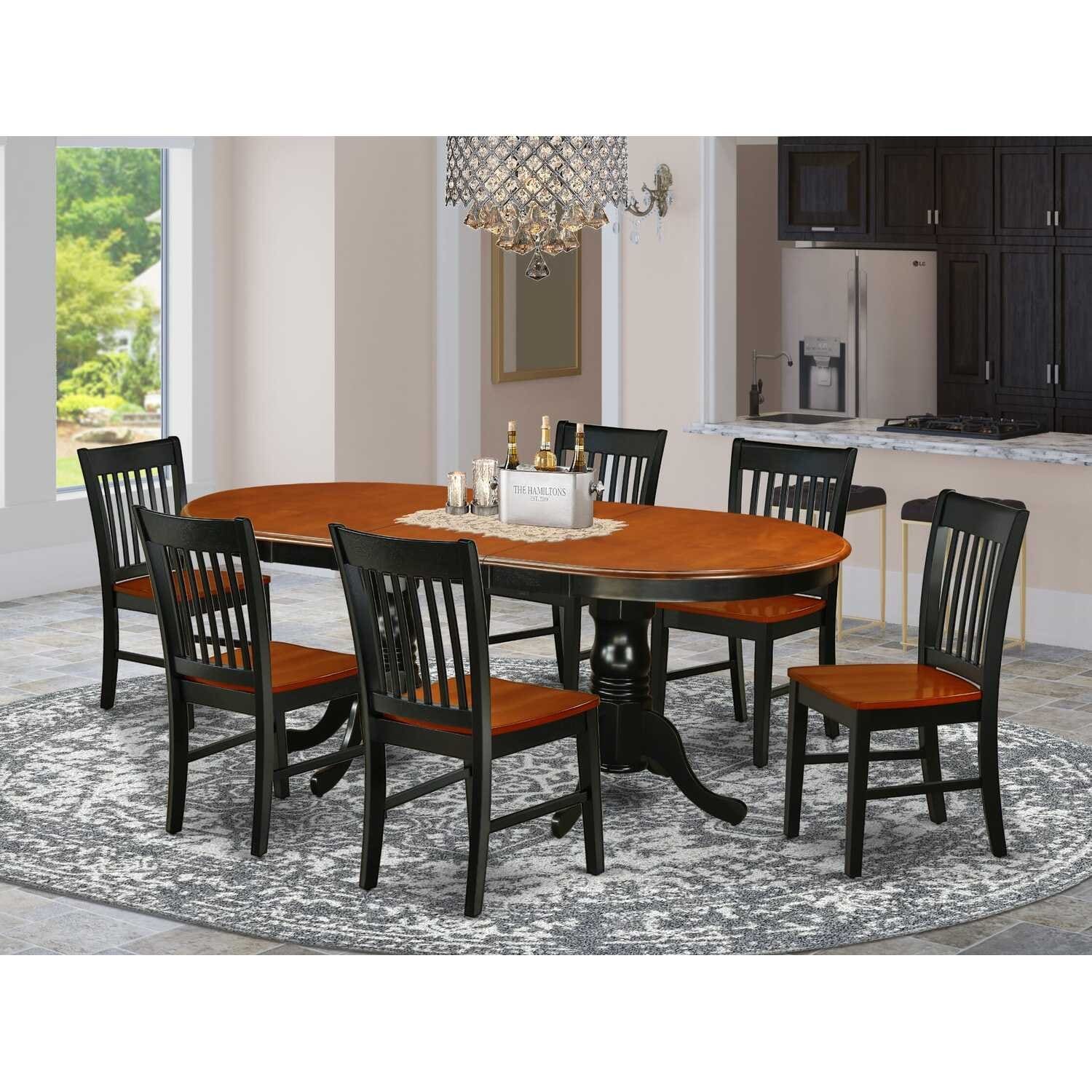 HomeStock 7-Piece Black and Cherry Finish Solid Wood Top Dining Table with 6 Chairs