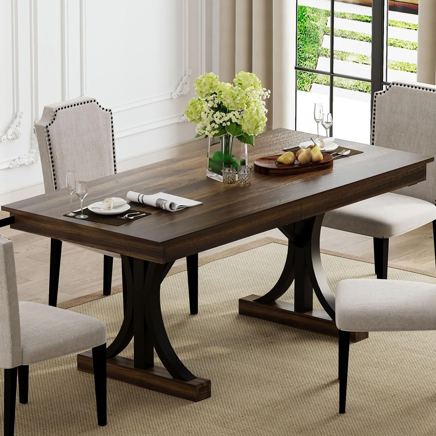 Wood Dining Table for 6-8 with 2 Large Drawers, 70.87" Long Farmhouse Rectangular Kitchen Dining Table and Thick Table Top