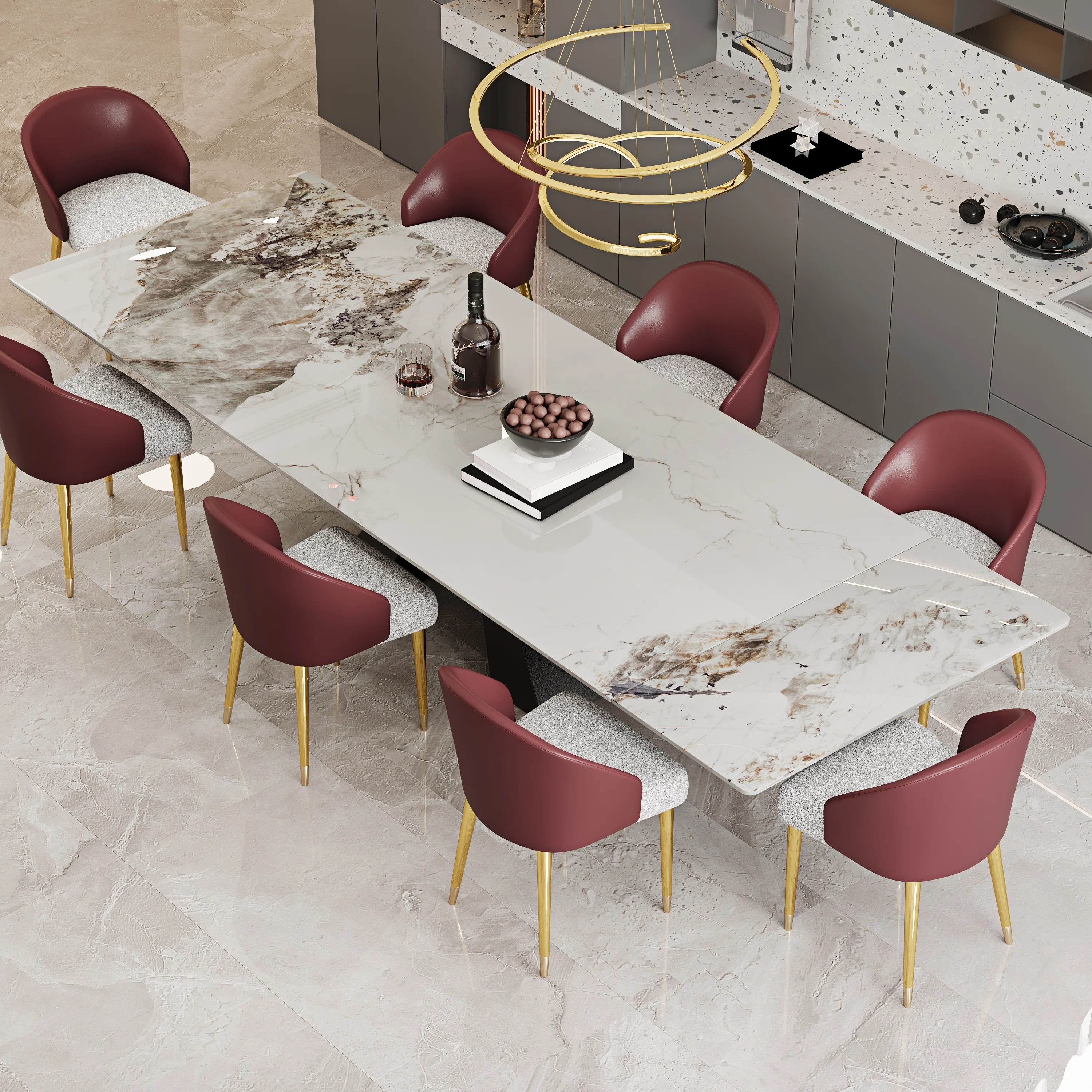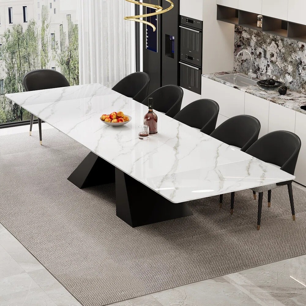 Minimalism Extendable Rectangular Sintered Stone Double Pedestal Dining Table Seat For 8-12 - 110.24"