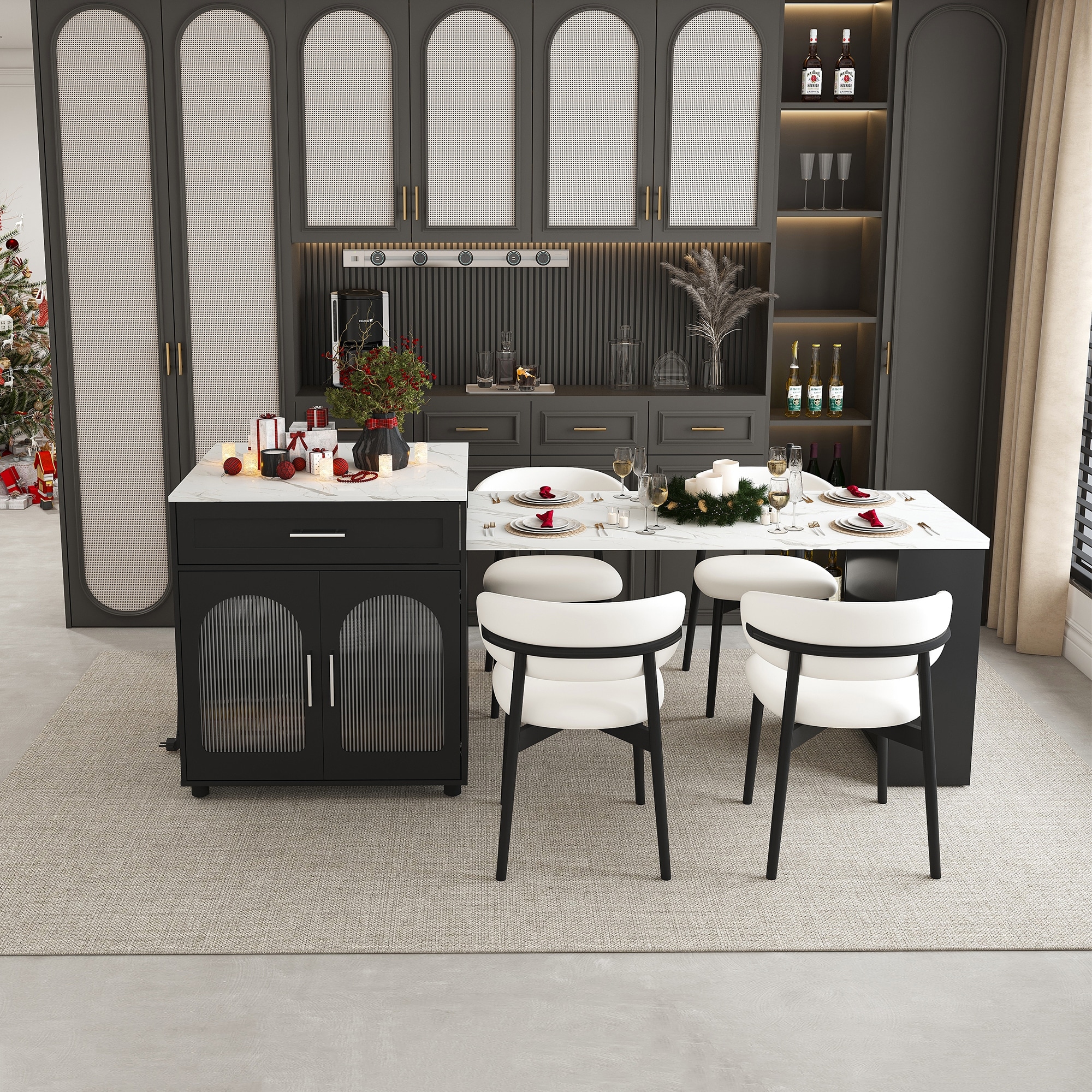 80" Expandable Kitchen Island (Marble Top, Power Outlet, Storage)