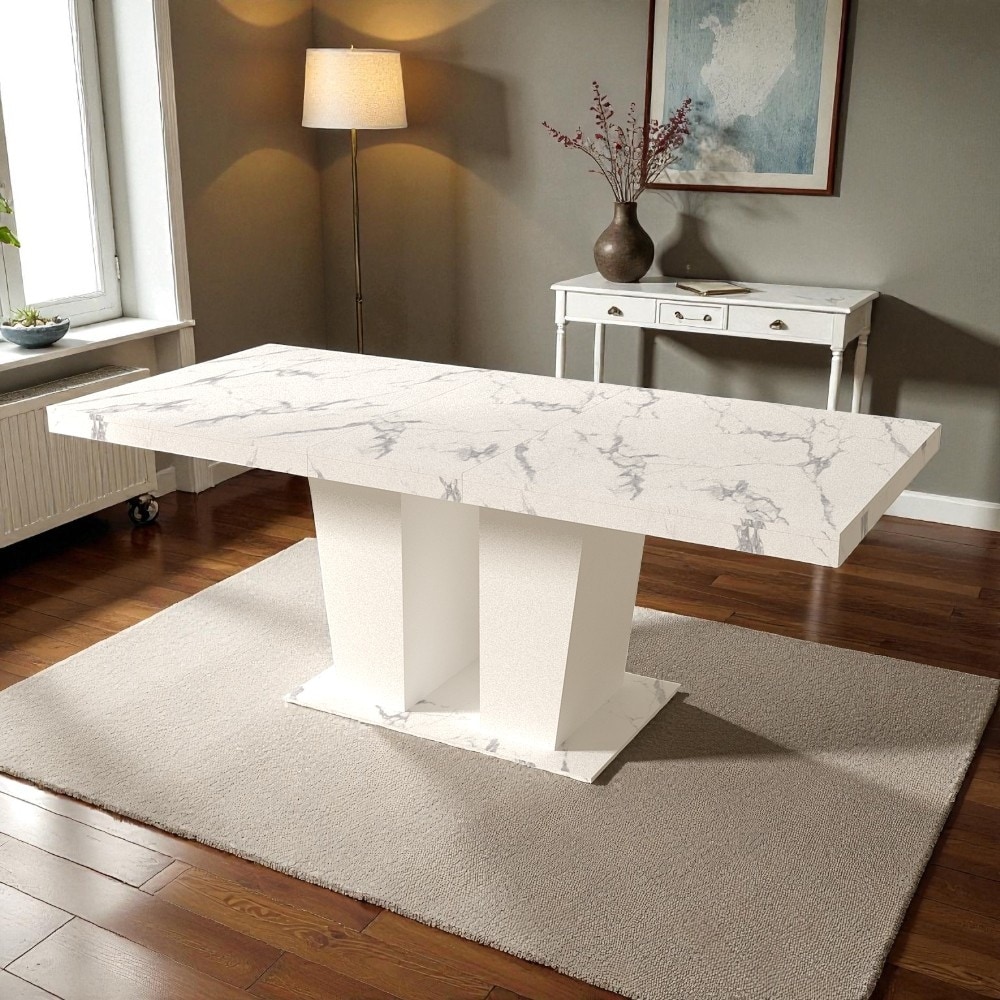 Extendable Dining Table for 4-10, Wooden Modern Transformer Table with Double Pedestal Base, Expandable Kitchen Dining Table