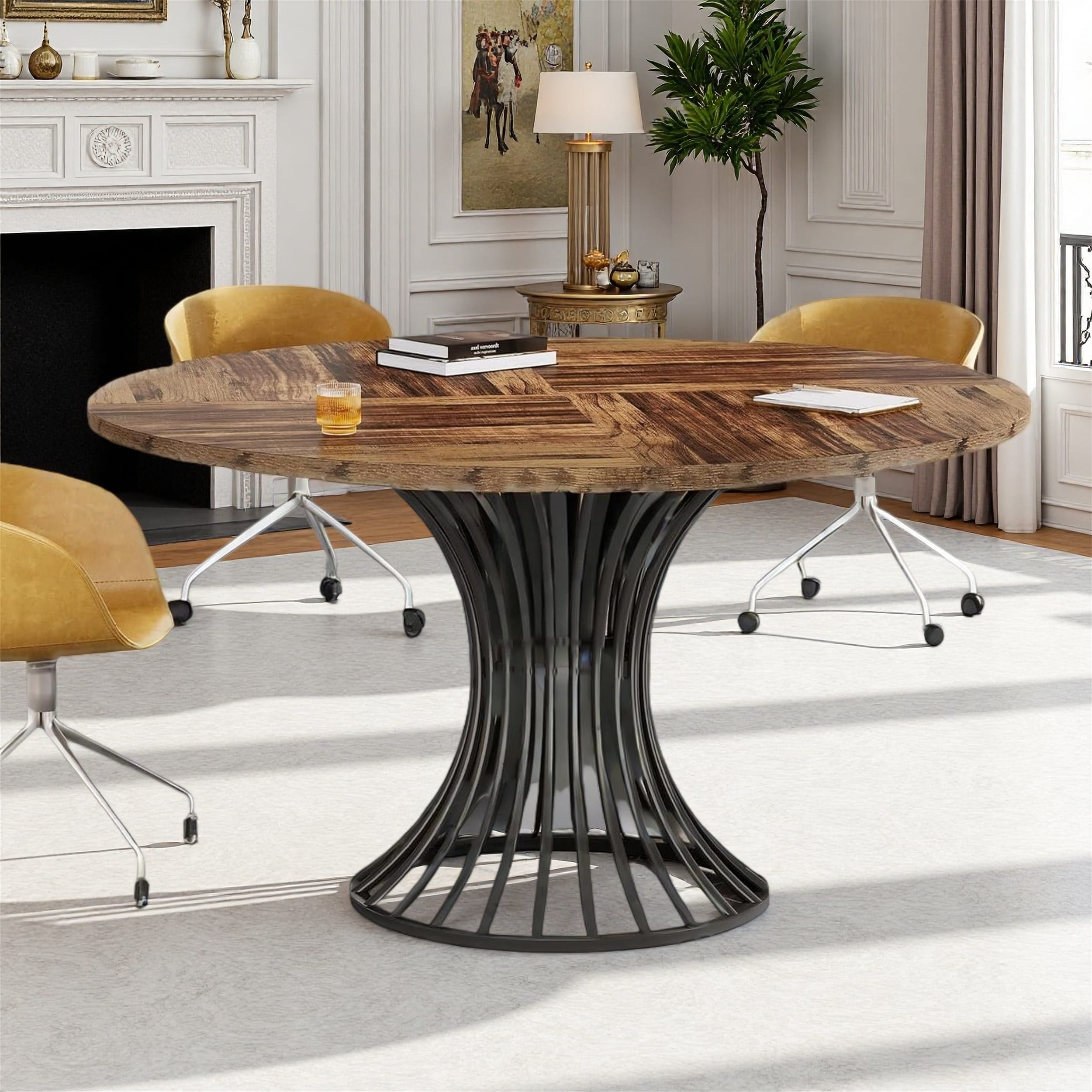 Round Dining Table for 6 with Metal Base,Wood Grain Top,350lb Capacity