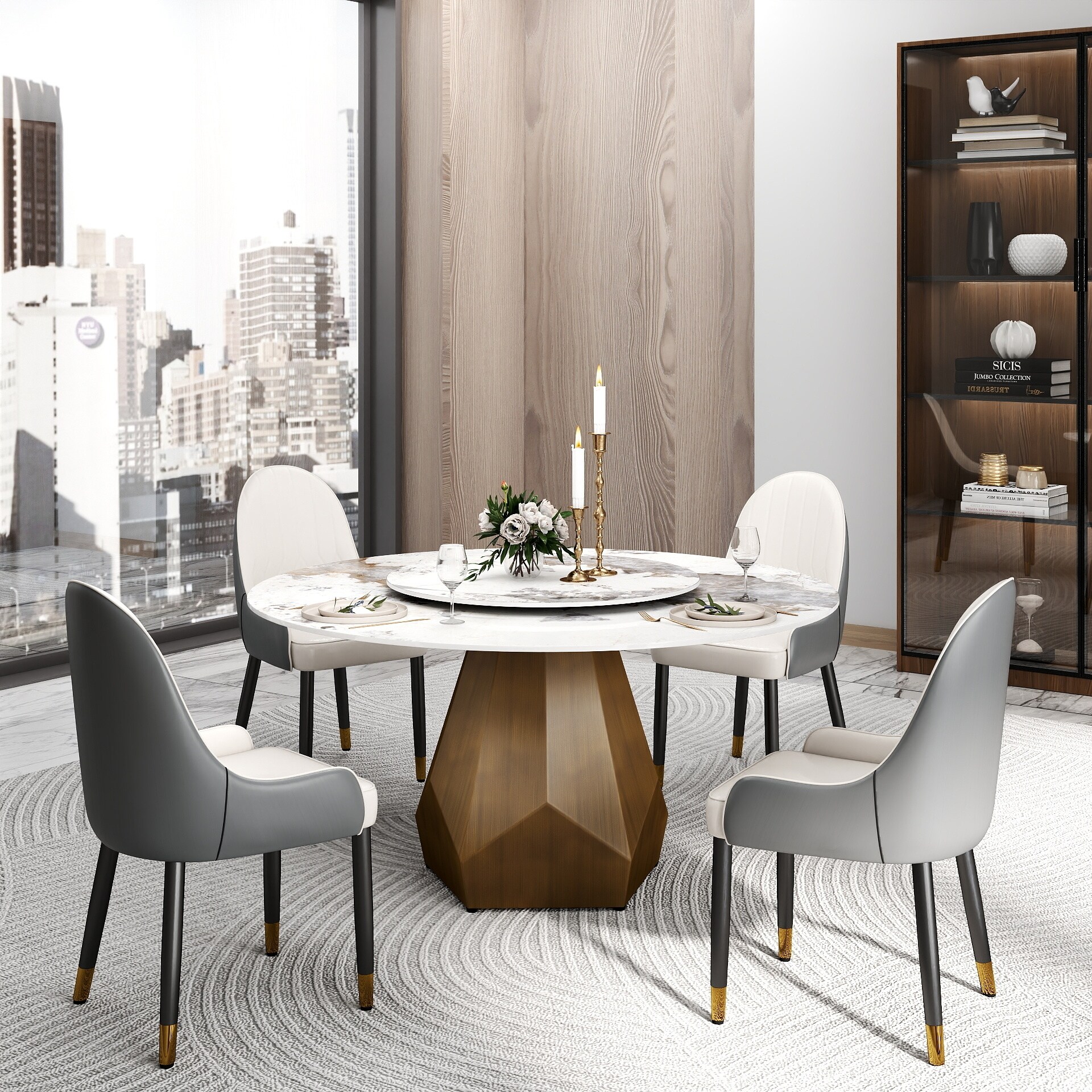 Round Artificial Marble Dining Table with Artificial Stone Turntable & Metal Base(Dining Table Only)