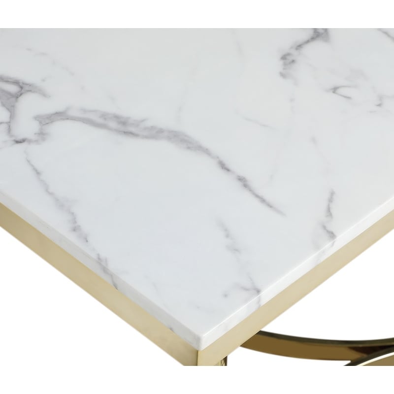 Best Master Furniture Bokan Gold Pedestal Stone Marble Laminate Dining Table