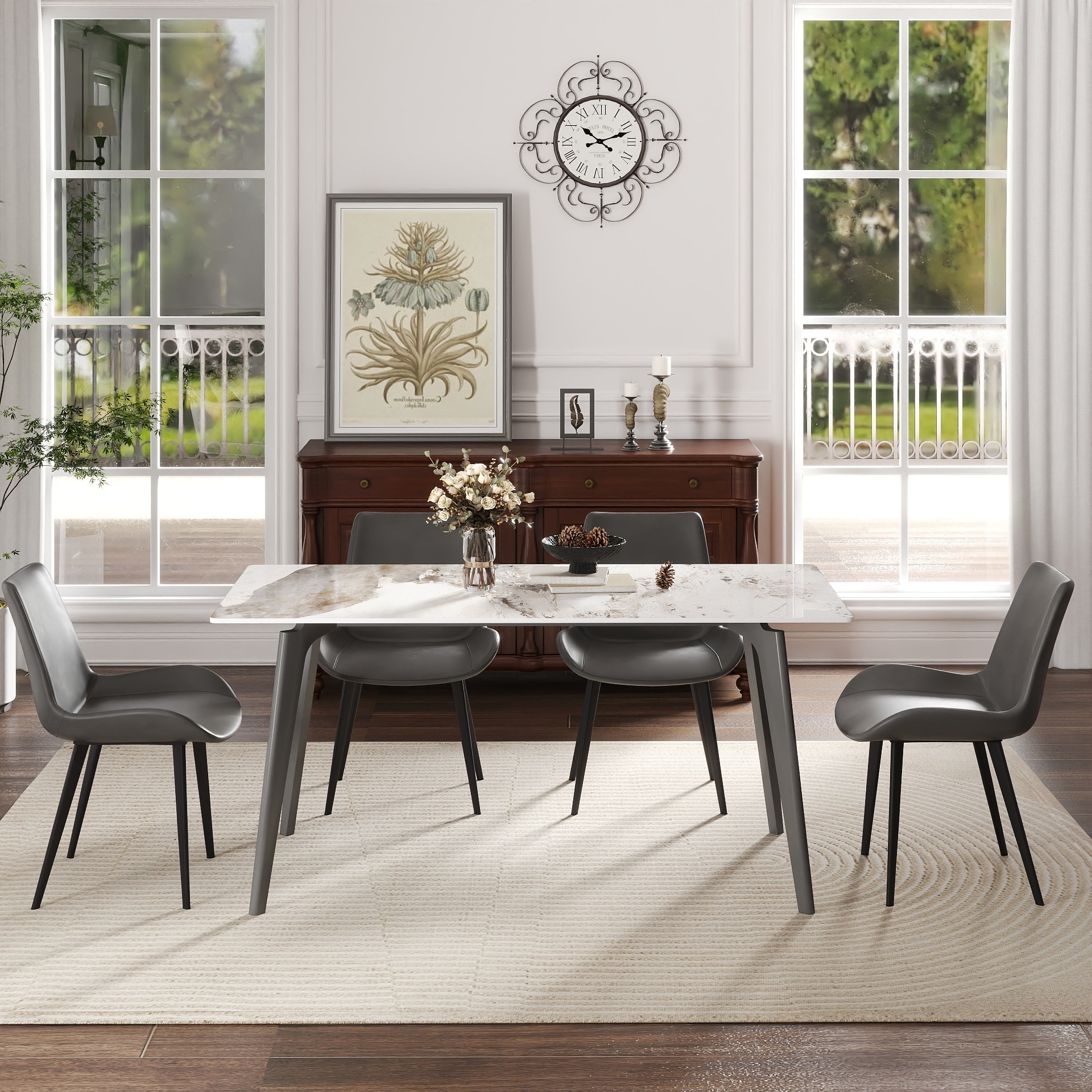 62.99" Modern Artificial Stone Straight Edge Metal Leg Dining Table - Seats 6 (Table Only)