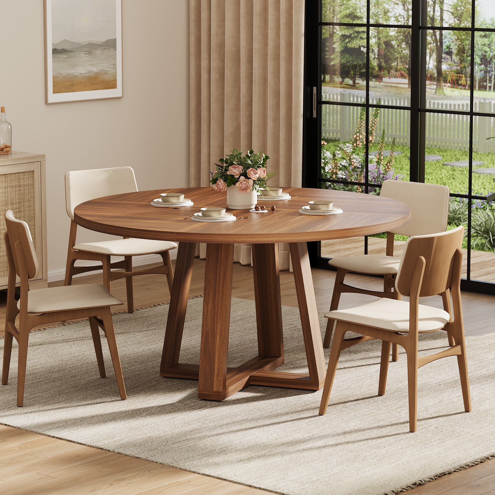 Round Dining Table for 4-6 People, 47" Dining Room Table with Wooden Cross Pedestal Base, Modern Kitchen Table
