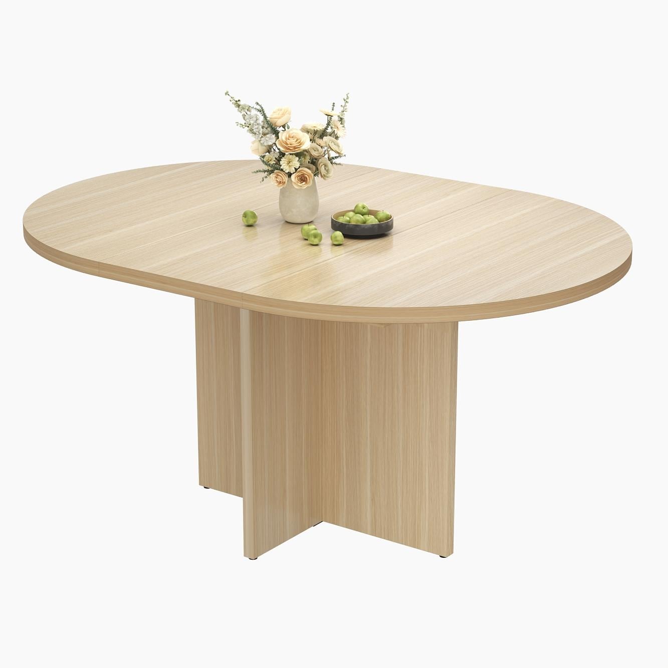 43.3''-59'' Extendable Dining Table for 4-6, Round to Oval Kitchen Table with Hidden Storage & Sturdy Cross Base