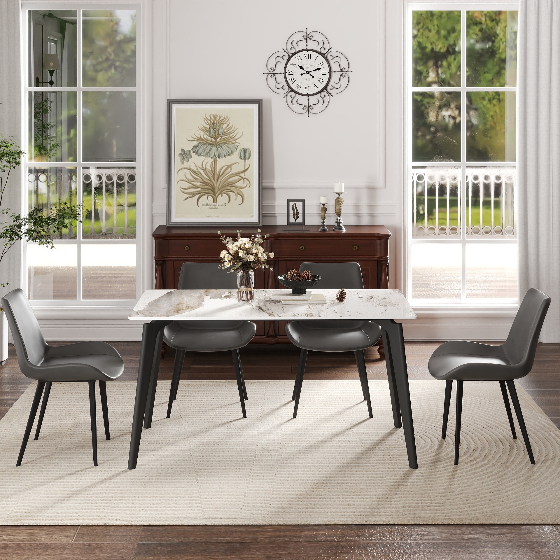 55.12" Modern Artificial Stone Straight Edge Metal Leg Dining Table - Seats 6 (Table Only)
