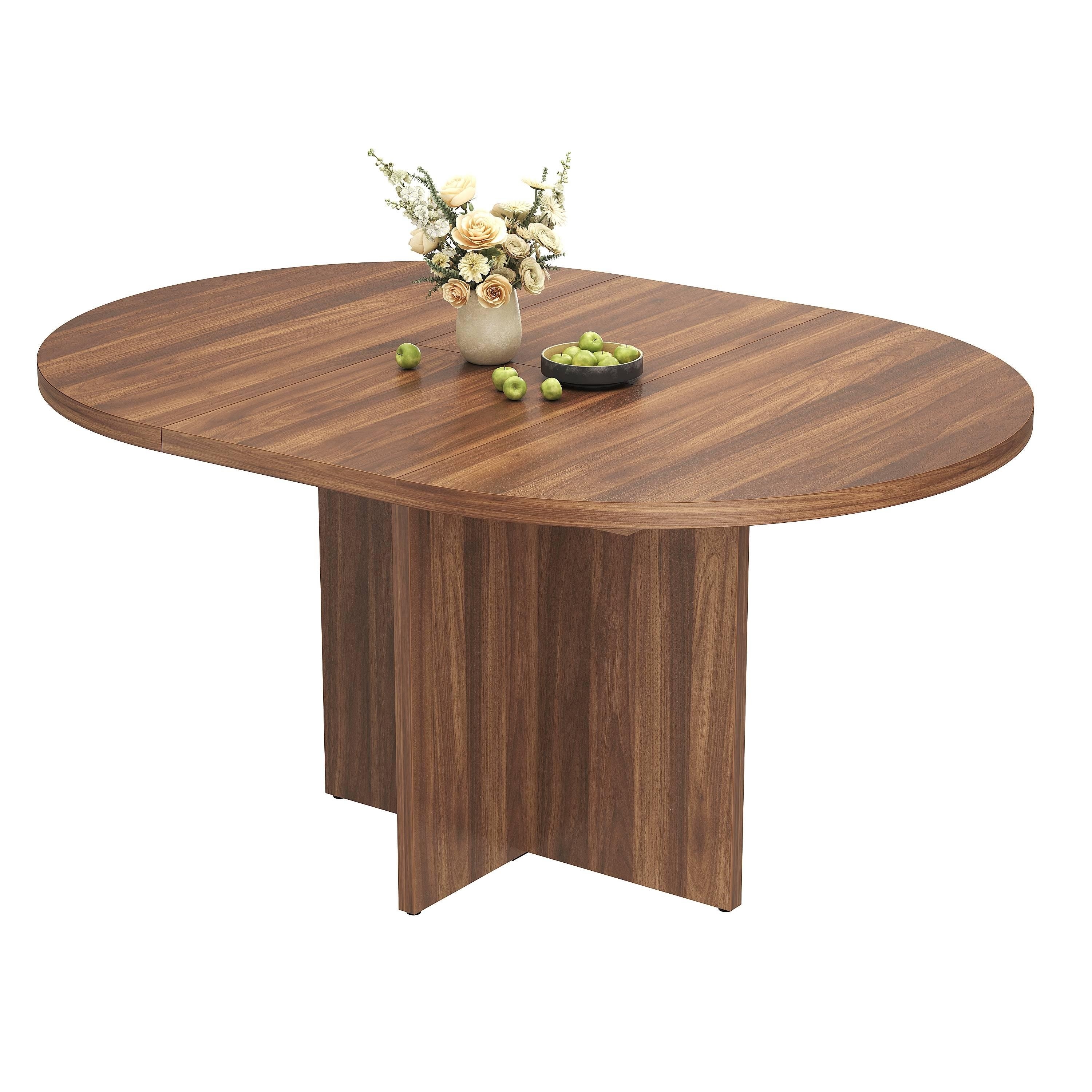 43.3''-59'' Extendable Dining Table for 4-6, Round to Oval Kitchen Table with Hidden Storage & Sturdy Cross Base