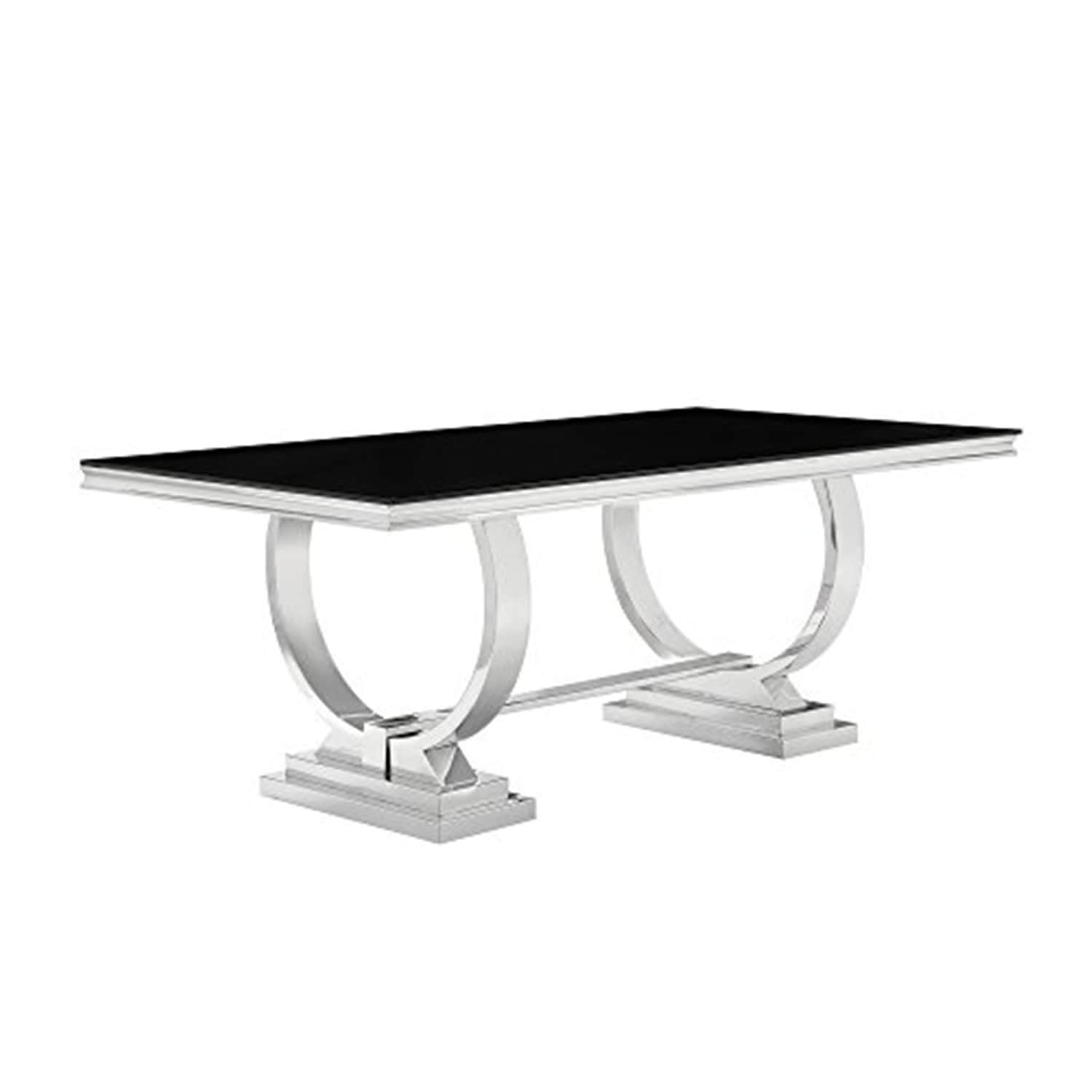 Contemporary Rectangular Dining Table - Silver & Black, 42"D x 94.5"W, Stainless Steel & Glass - 94.5