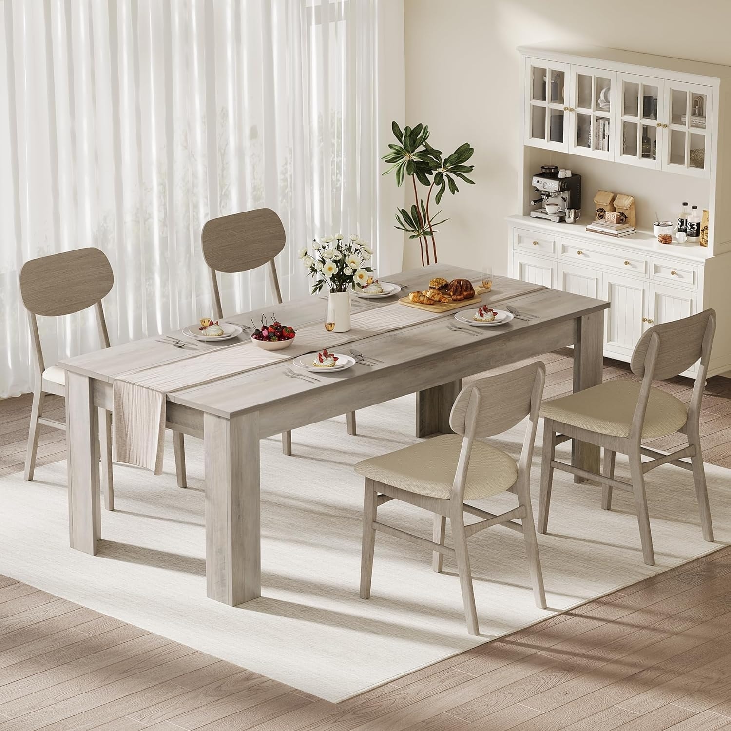 71" Farmhouse Dining Table for 6-8, Thick Rectangular Top & Wide Legs