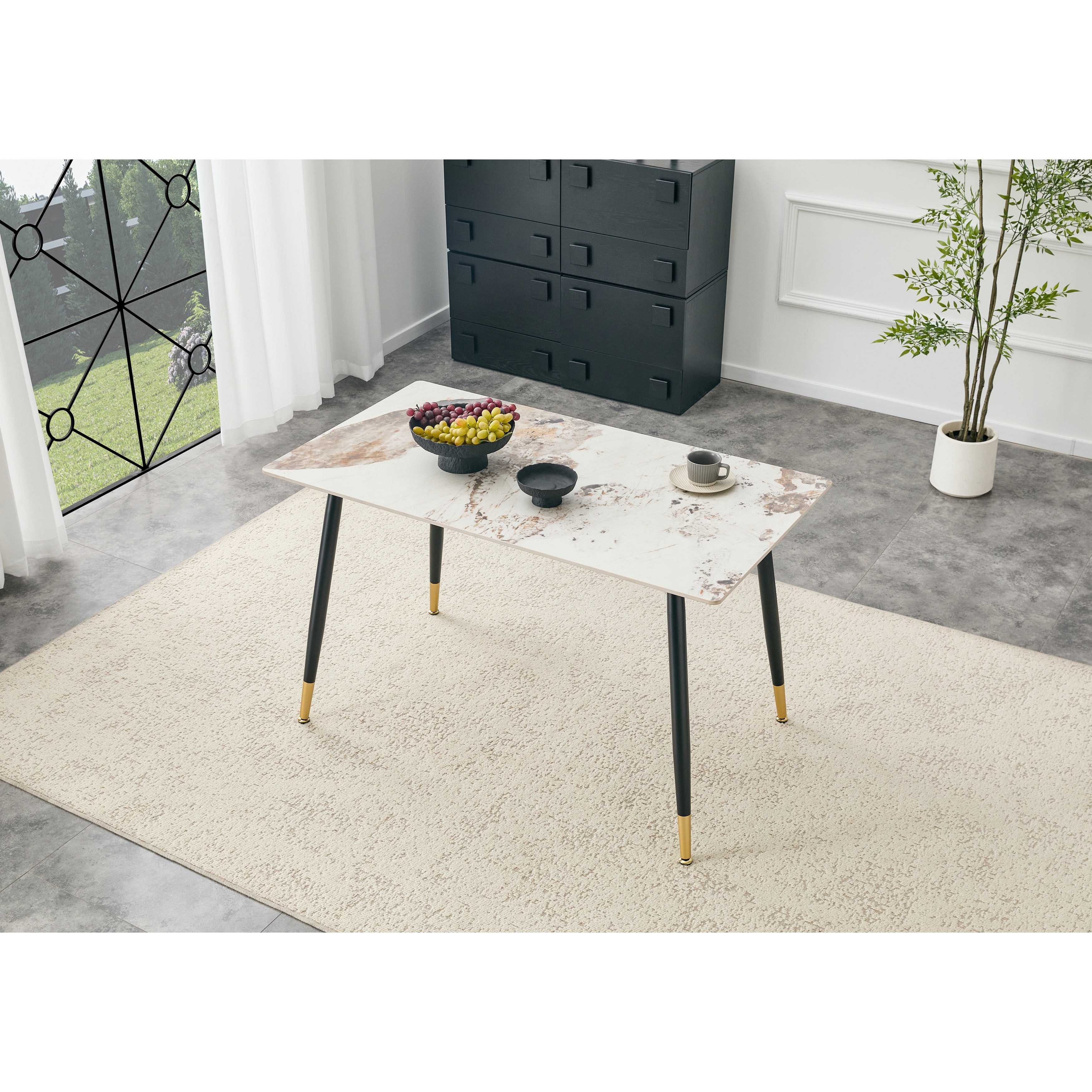 Modern Rectangular Dining Table,Sintered Stone Tabletop with Sturdy Metal Base,Heat-Resistant & Scratch-Resistant Dining Table