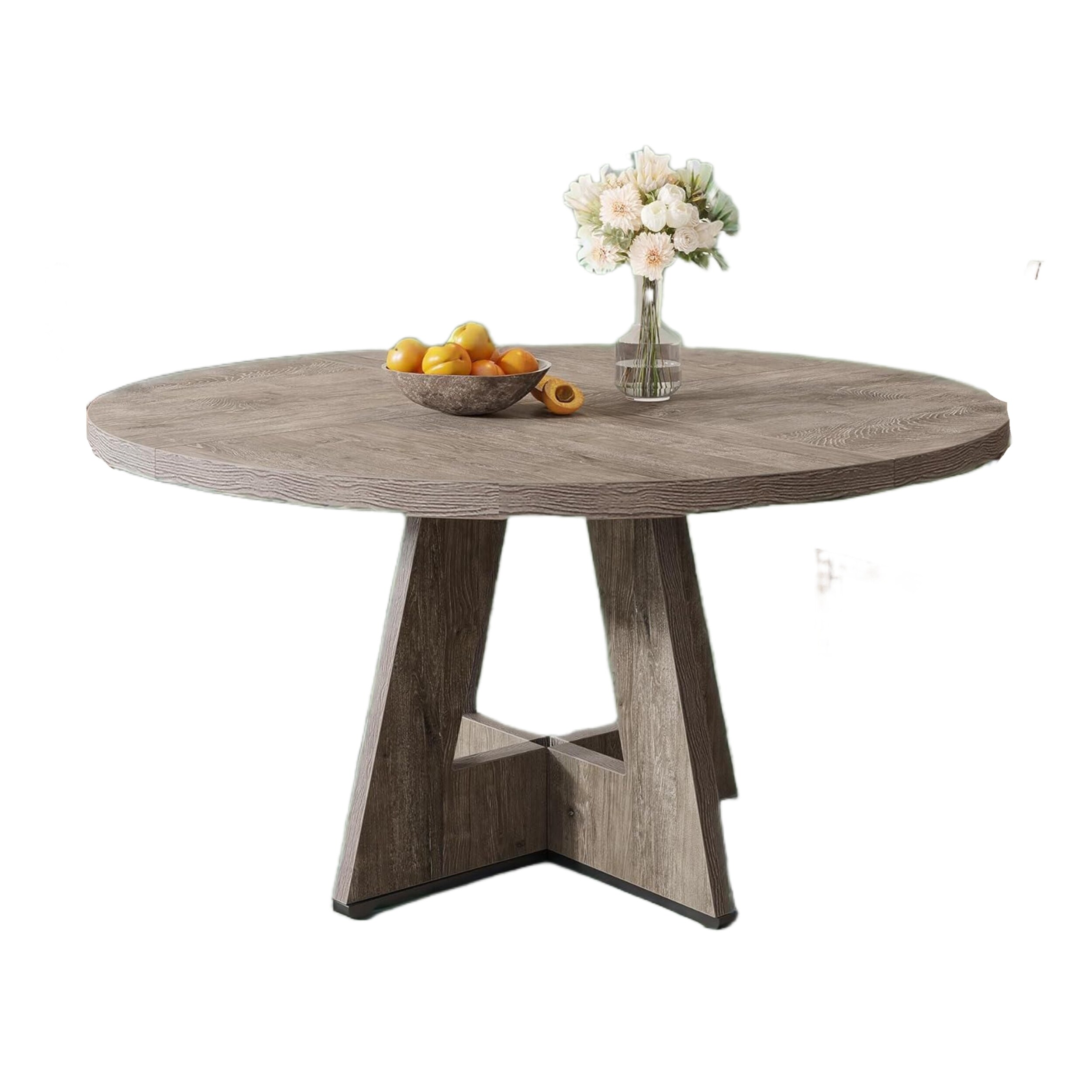 47.24" Round Rubber Wood Dining Table for 4-6 with Wooden Trestle Pedestal Base, Modern Kitchen Wooden Table Dinner Table