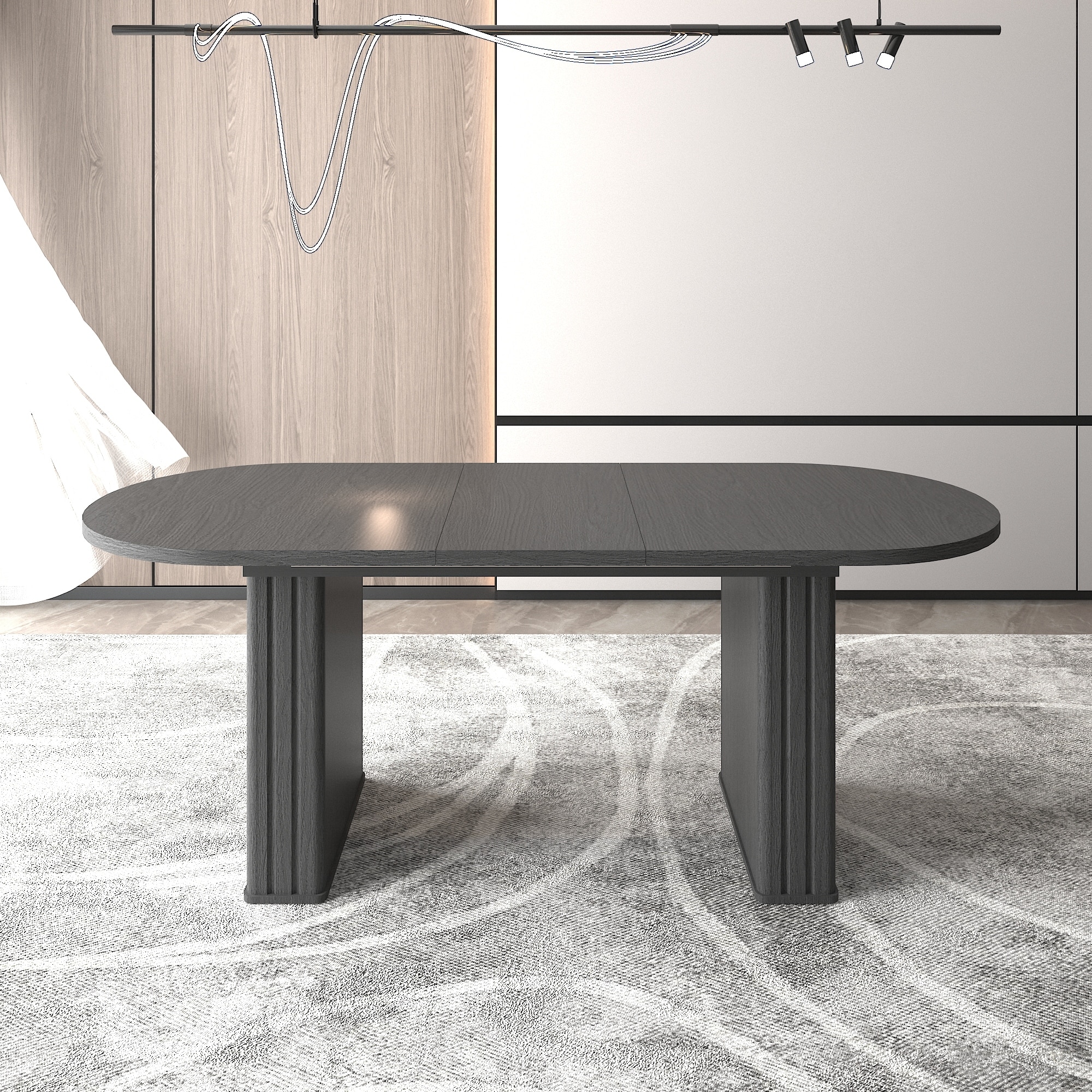 Extendable Kitchen Dining Table For 4-8 People - Oval Shape With Wooden Strip Base, Suitable For Family Living Room (Black)