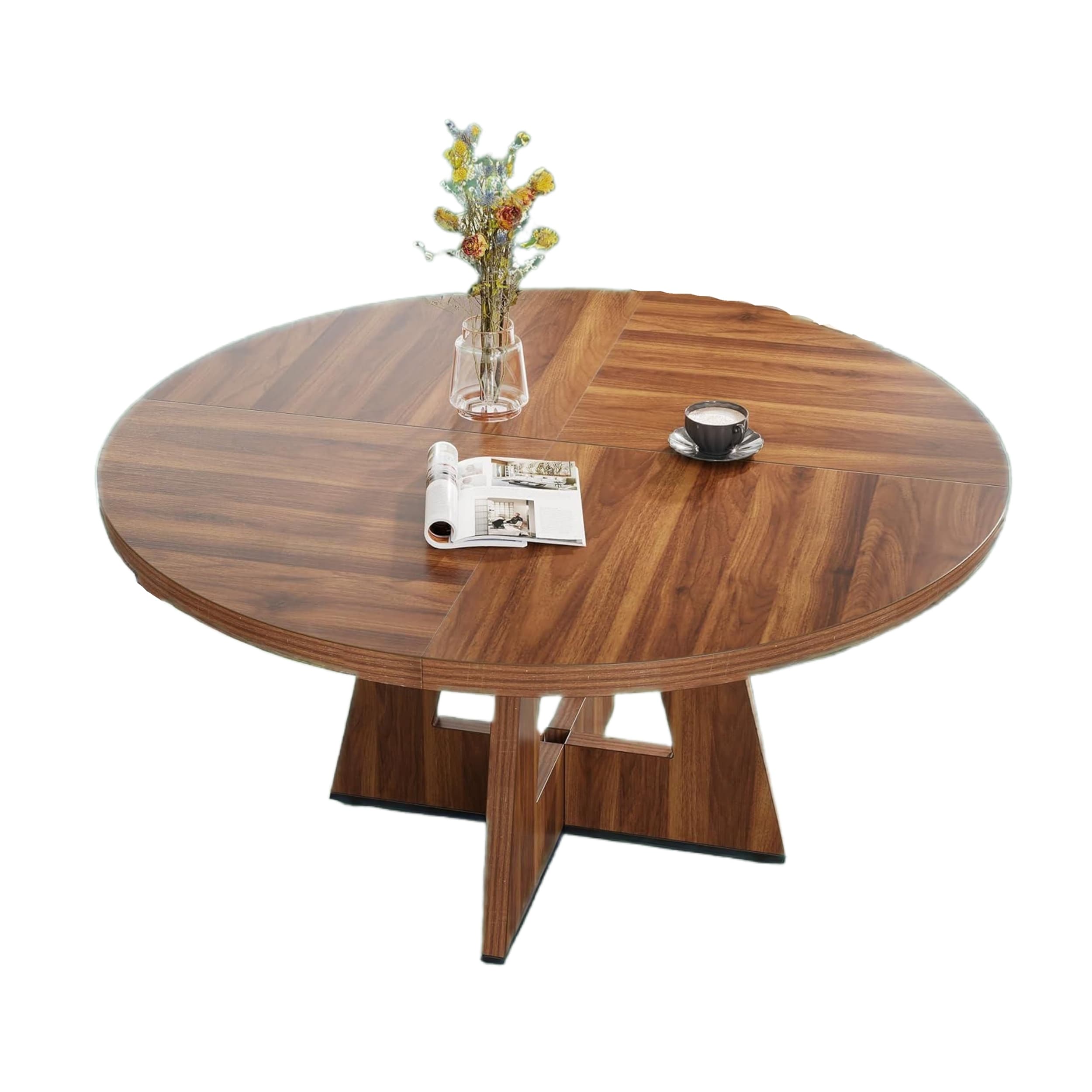 Roomfitters Farmhouse Round Extendable Dining Table for Kitchen or Dining Room
