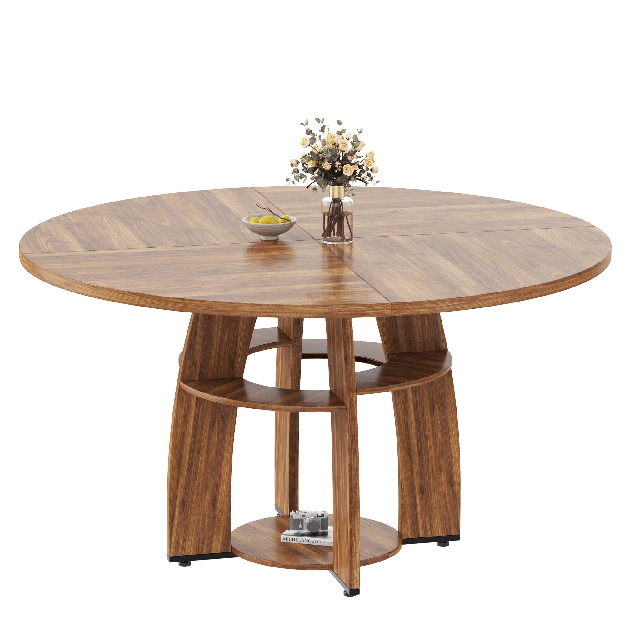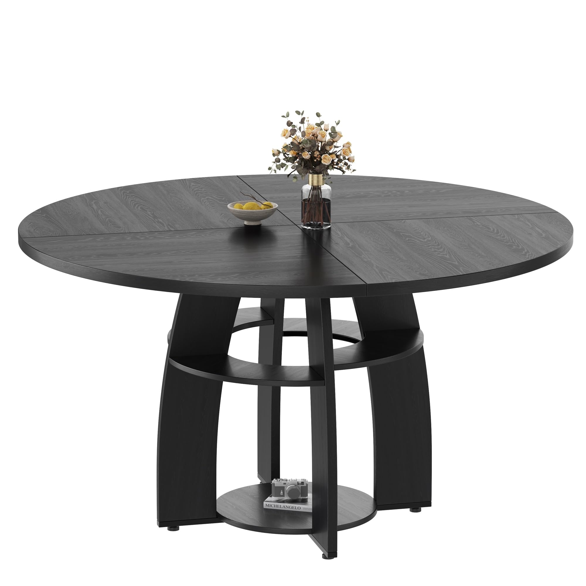 Round Dining Table for 4-6,47.2" Farmhouse Kitchen Table with Storage,Circle Dinner Tables for Kitchen,Natural and Black