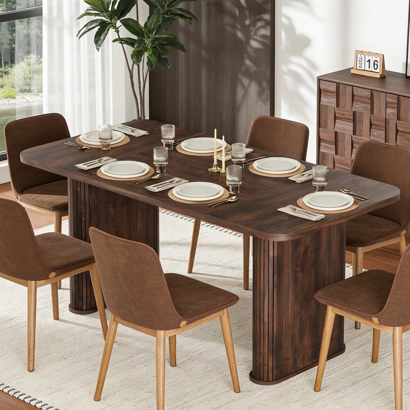 62" Dining Table for 6-8, Rectangular Wooden Kitchen Table with Double Pedestal Base