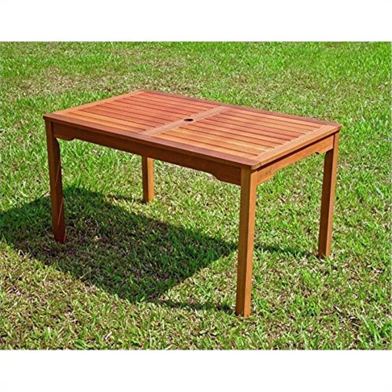 Outdoor Acacia Wood Dining Table - Patio Table with Umbrella Hole - Rectangular Garden Table - 29