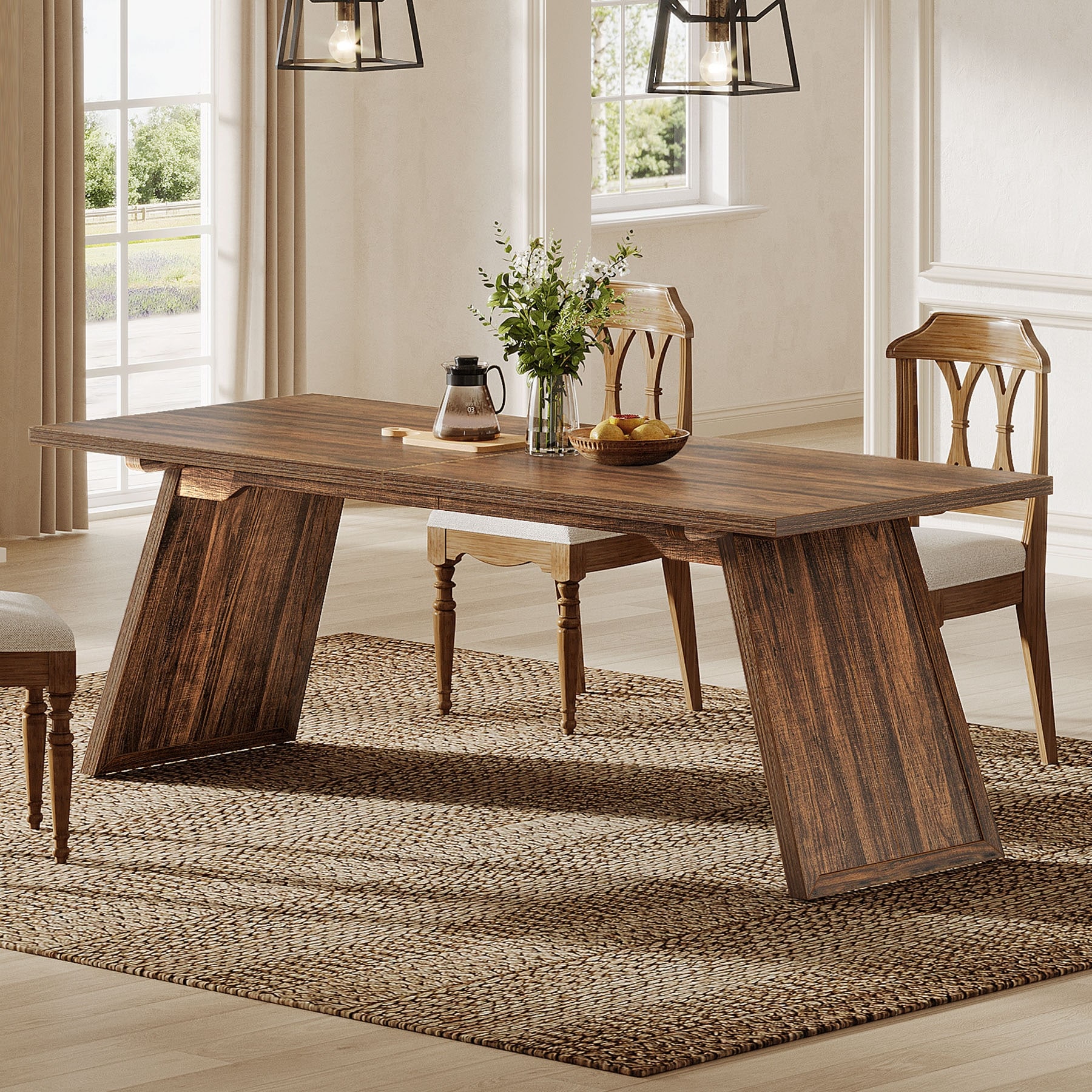 Rectangular Dining Table with Rustic Brown Finish - Wooden Kitchen Table with Sturdy Top and Base - 47.25