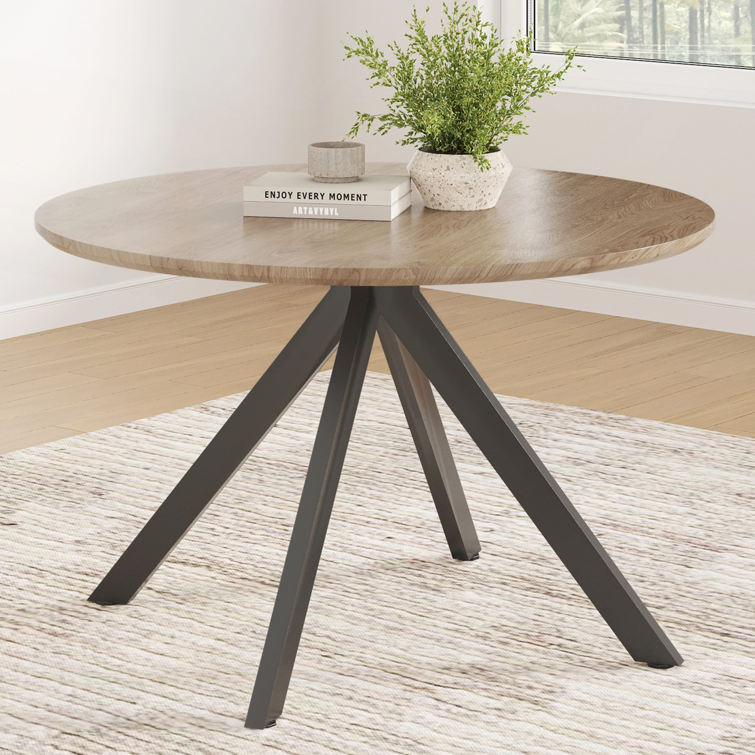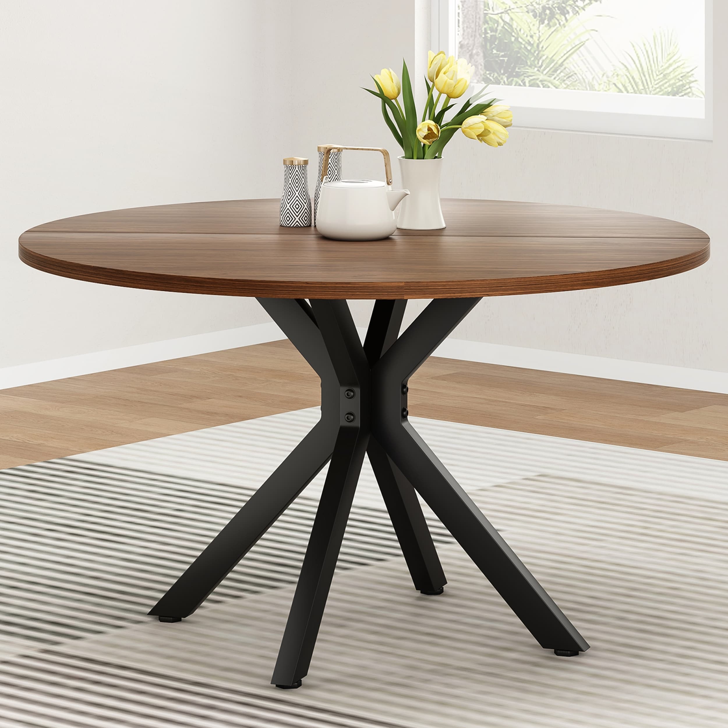 47.2 Inch Solid Wood Round Dining Table with Intersecting X-Shaped Pedestal Base for 4-6 People