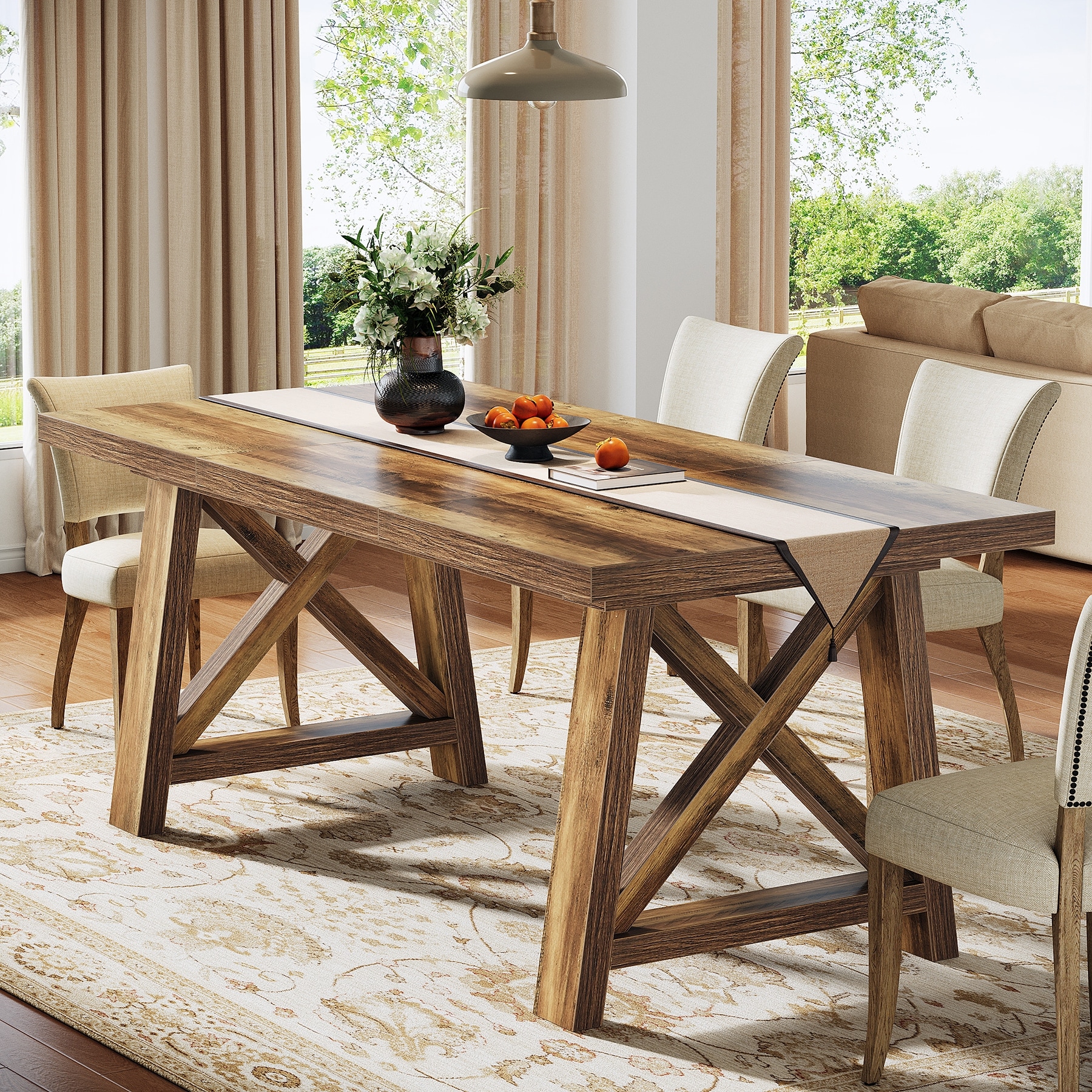 Farmhouse Dining Table for 6-8, Rubber Wood Dinner Tables for Kitchen - 70 Inch