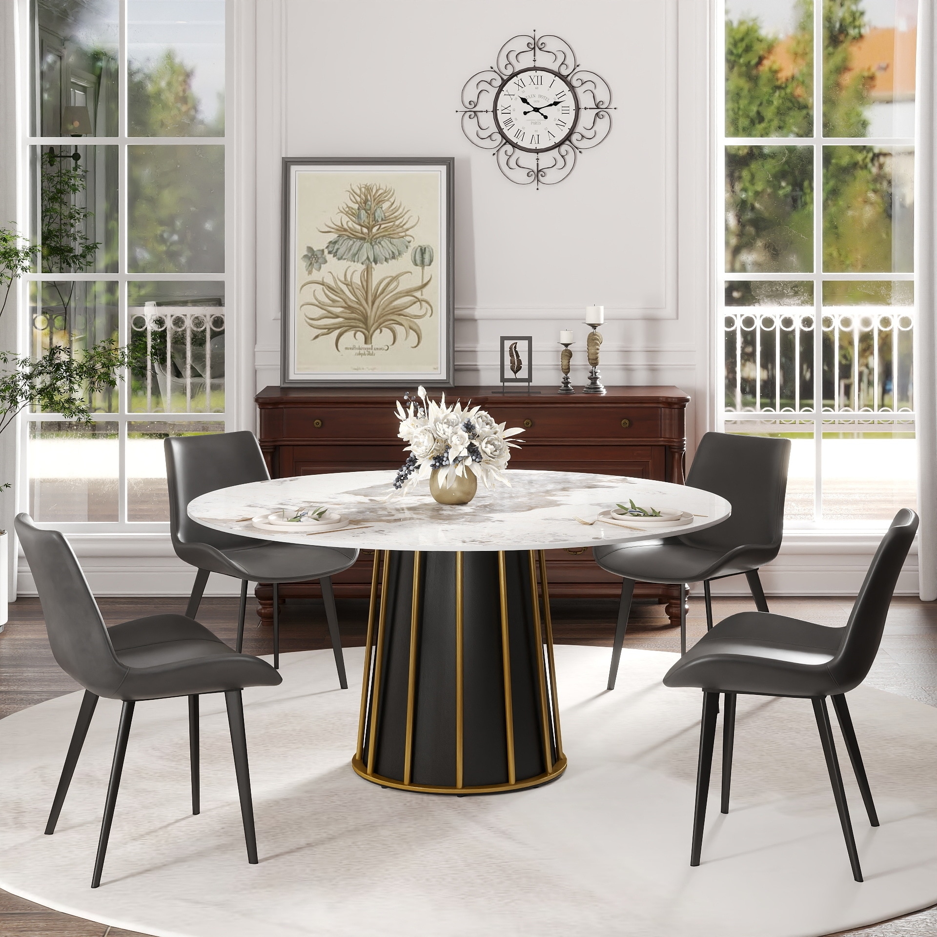 Modern Artificial Stone Round Dining Table with Metal Iron Base (Not Including Chairs)