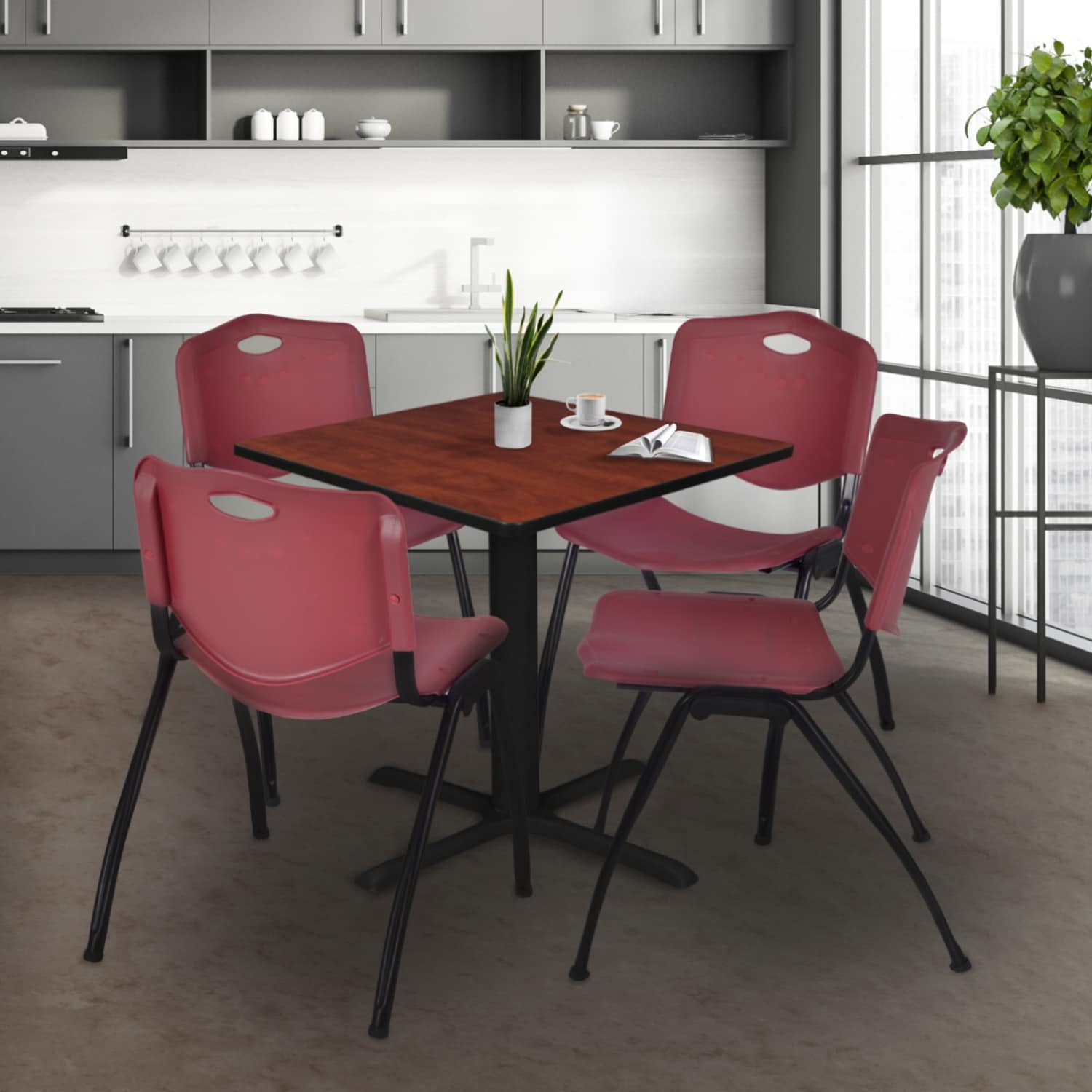 36" Square Breakroom Table- Cherry & 4 'M' Stack Chairs- Burgundy - 36
