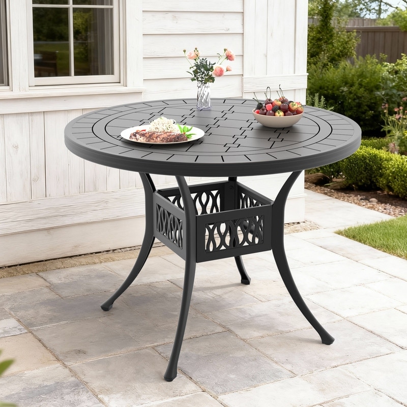 39.37 inch Black Round Cast Aluminum Patio Table with Retro Design
