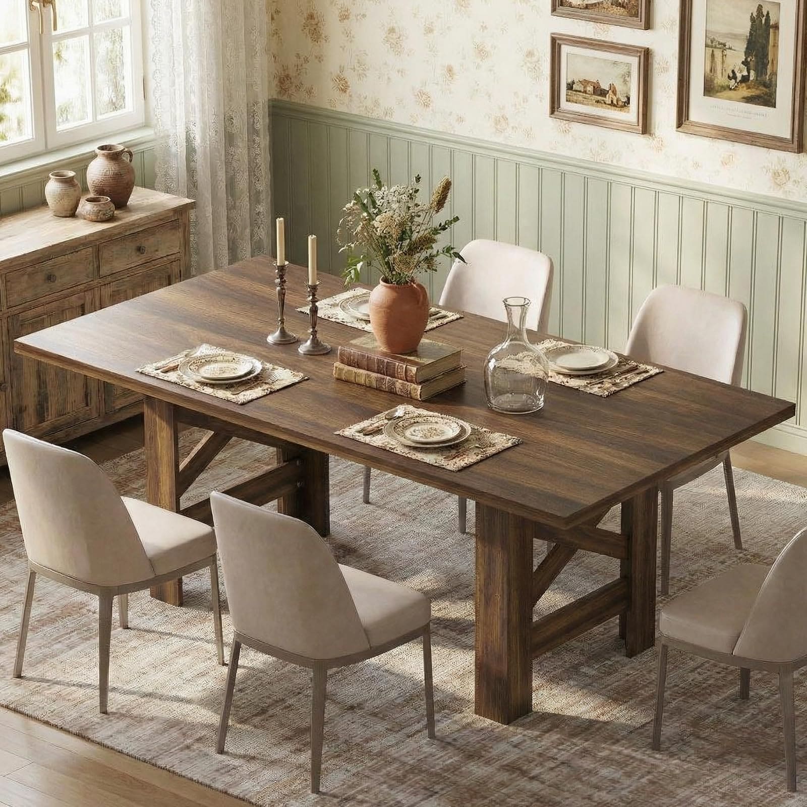 78" Large Rectangular Dining Table, Farmhouse Solid Wood Top Kitchen Table for Dining/Living Room