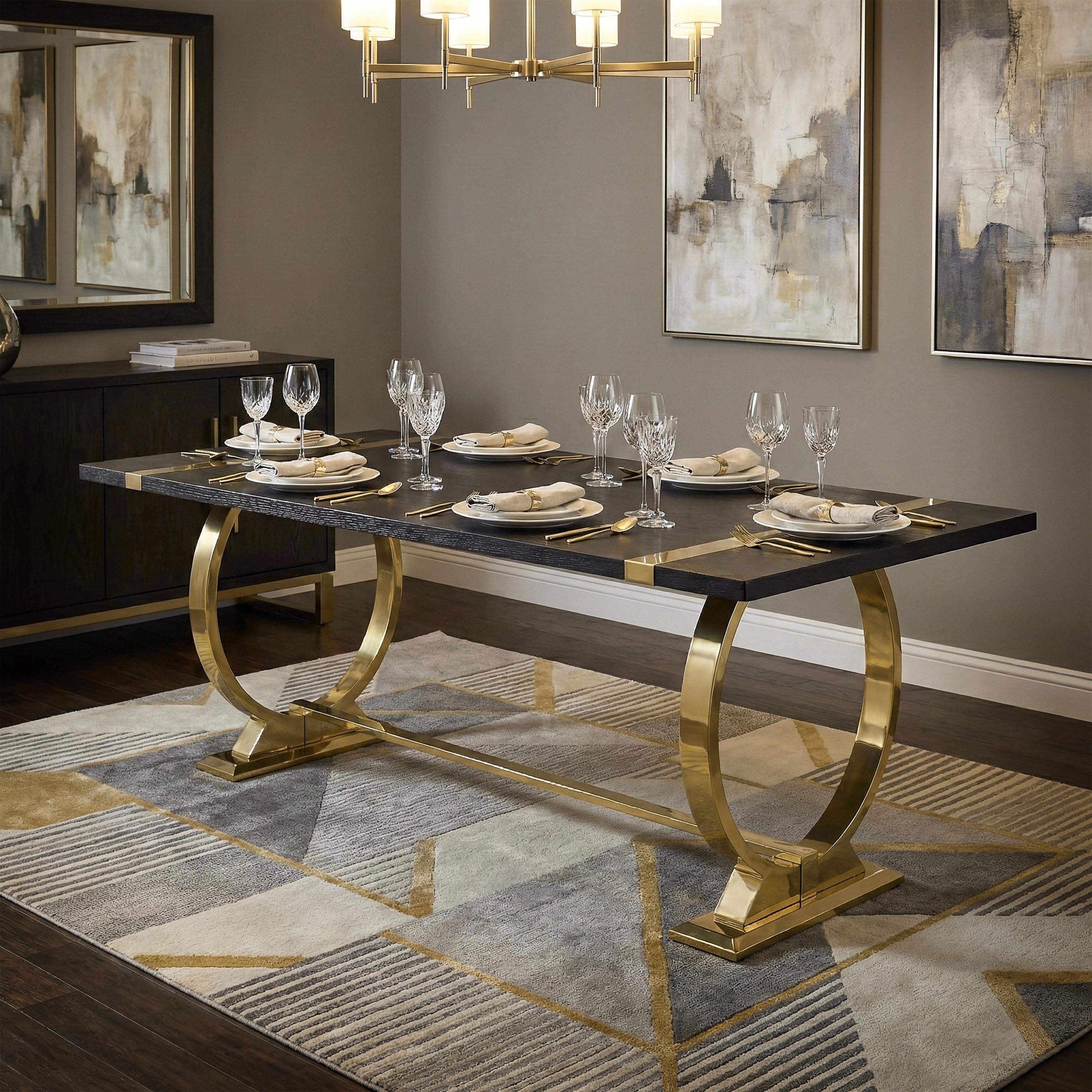 Modrest Marston Modern Black Glass & Rosegold Dining Table