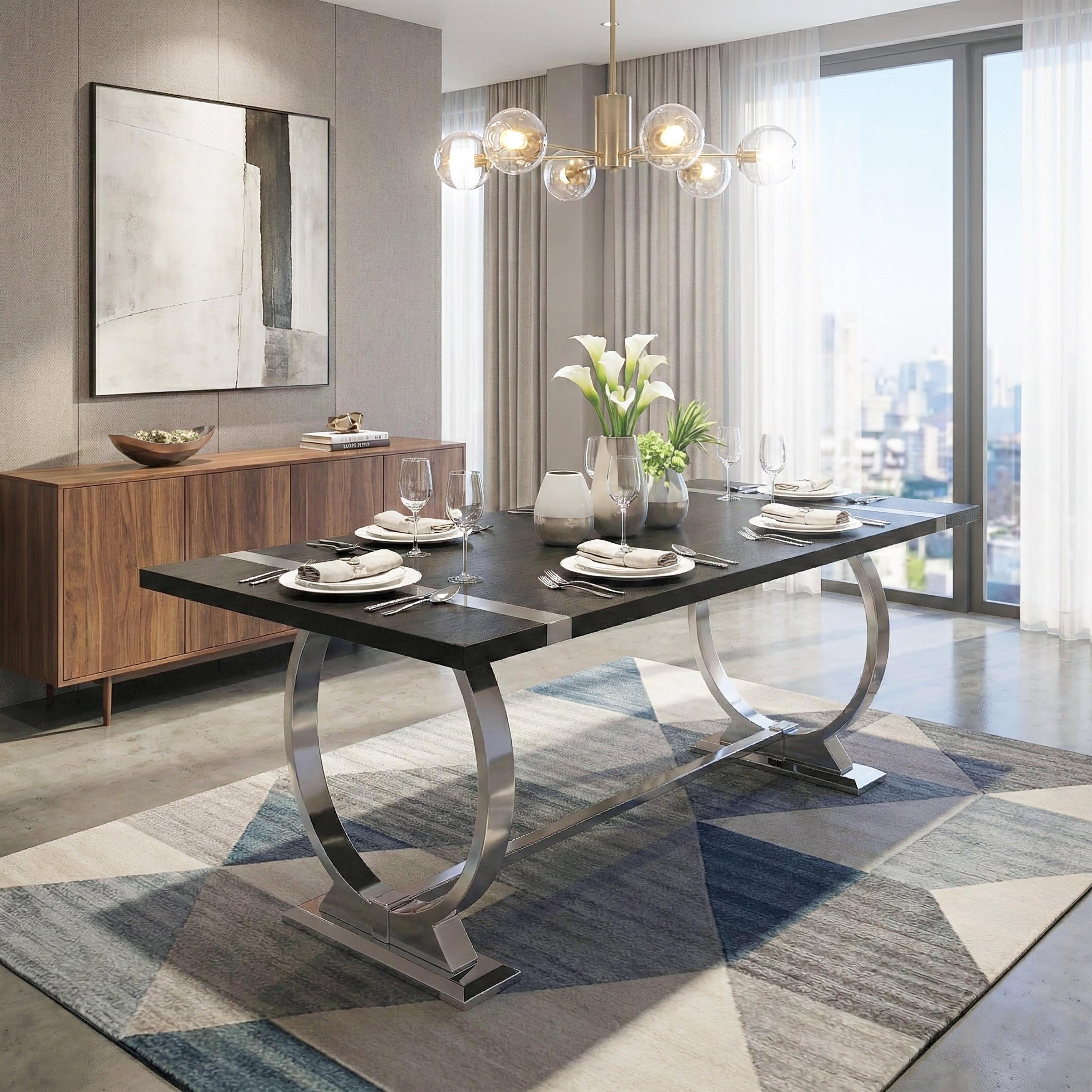 70.8/78.7 Inch Long Dining Table for 6 People,Large Rectangle Kitchen Table with Sturdy Metal Legs