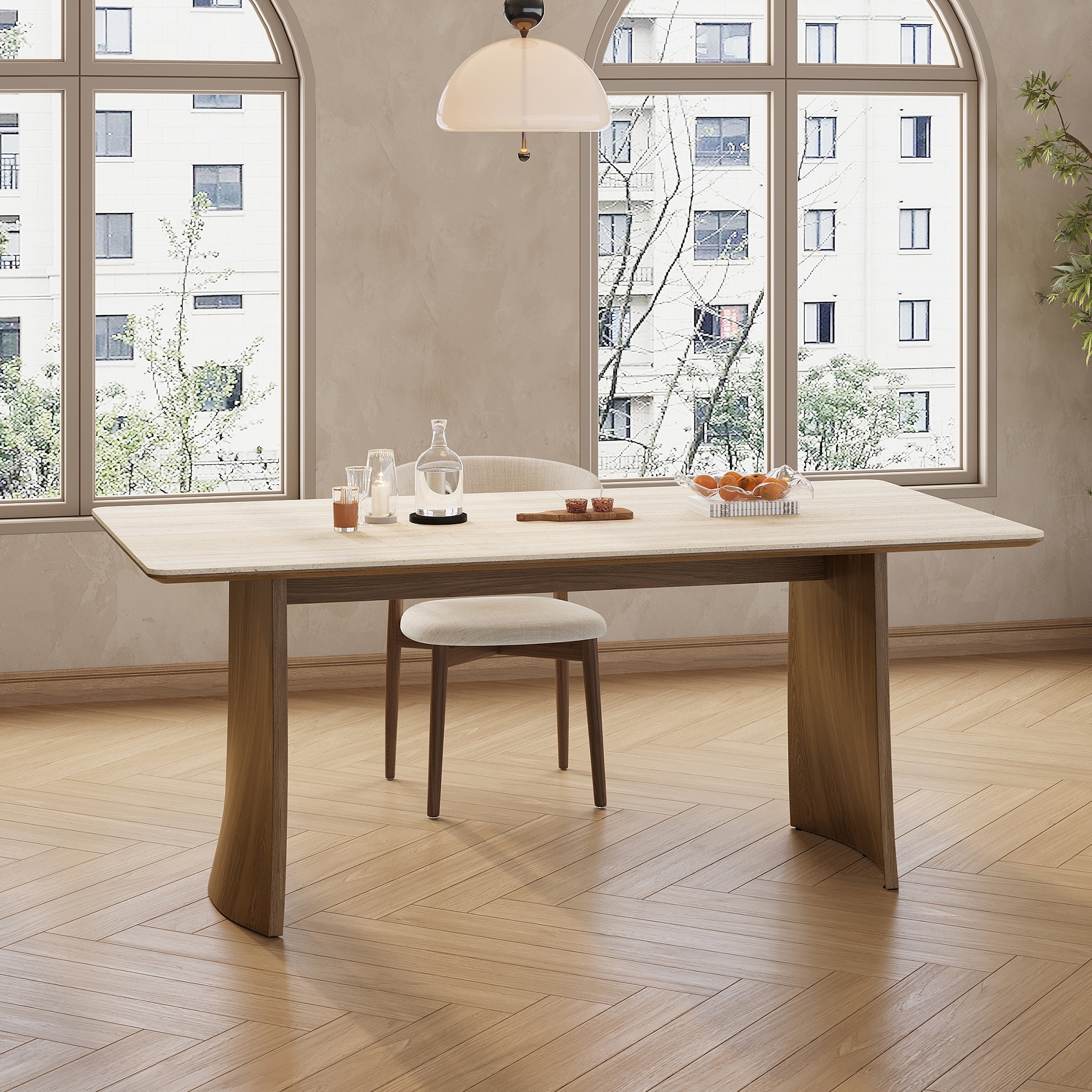 71"Mid-Century Modern Dining Table For 6, Retangular Kitchen Table With Beige Travertine Sintered Stone Top