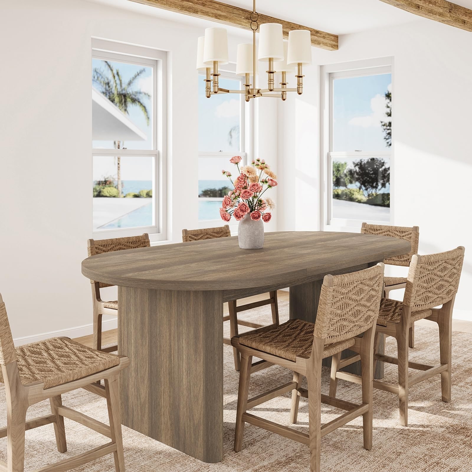 70.87" Oval Dining Table for 6-8, Farmhouse Kitchen Table with Thick Wooden Base