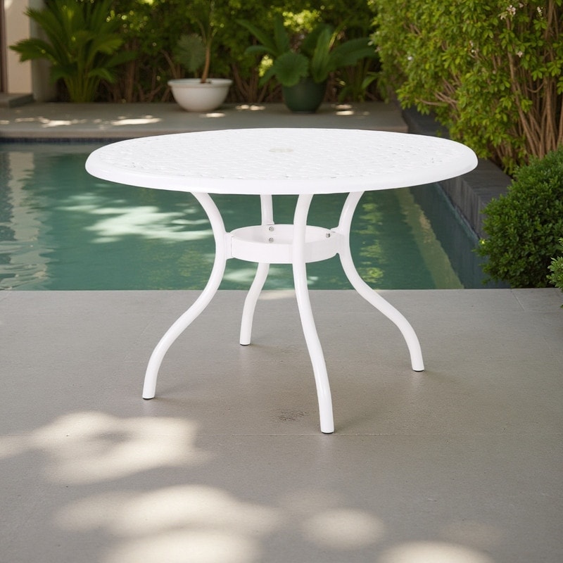 Aluminum Patio Dining Table with Round Top and Sturdy Frame