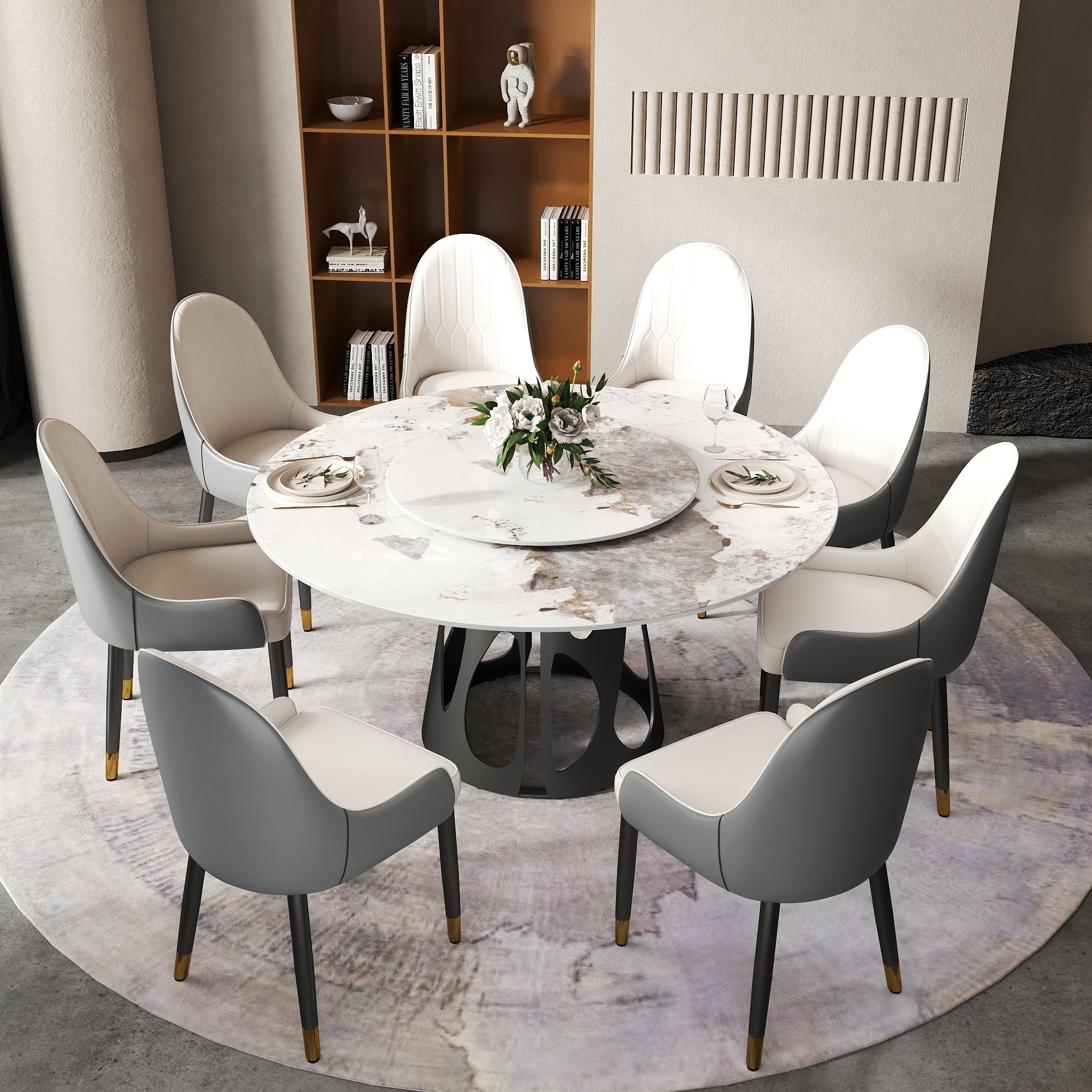Modern Round Artificial Marble Dining Table with Black Iron Metal Base & Artificial Stone Turntable(Dining Table Only)