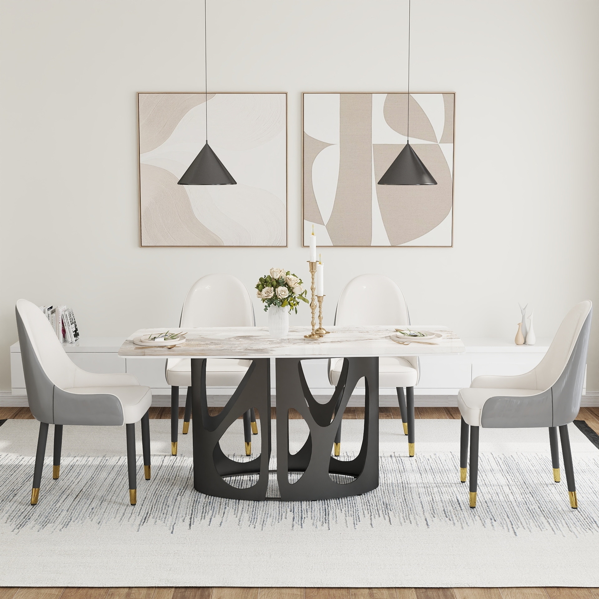 Modern Artificial Stone Rectangular Dining Table with Black Iron Metal Legs