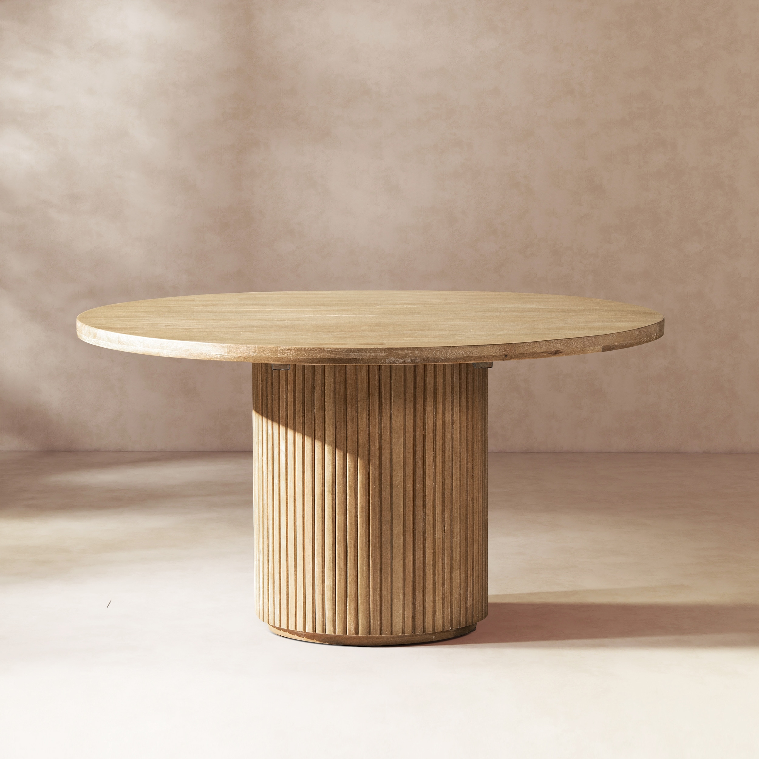 Charlotte 55" Japandi Farmhouse Round Fluted Dining Table - 55"W X 55"D X 30"H