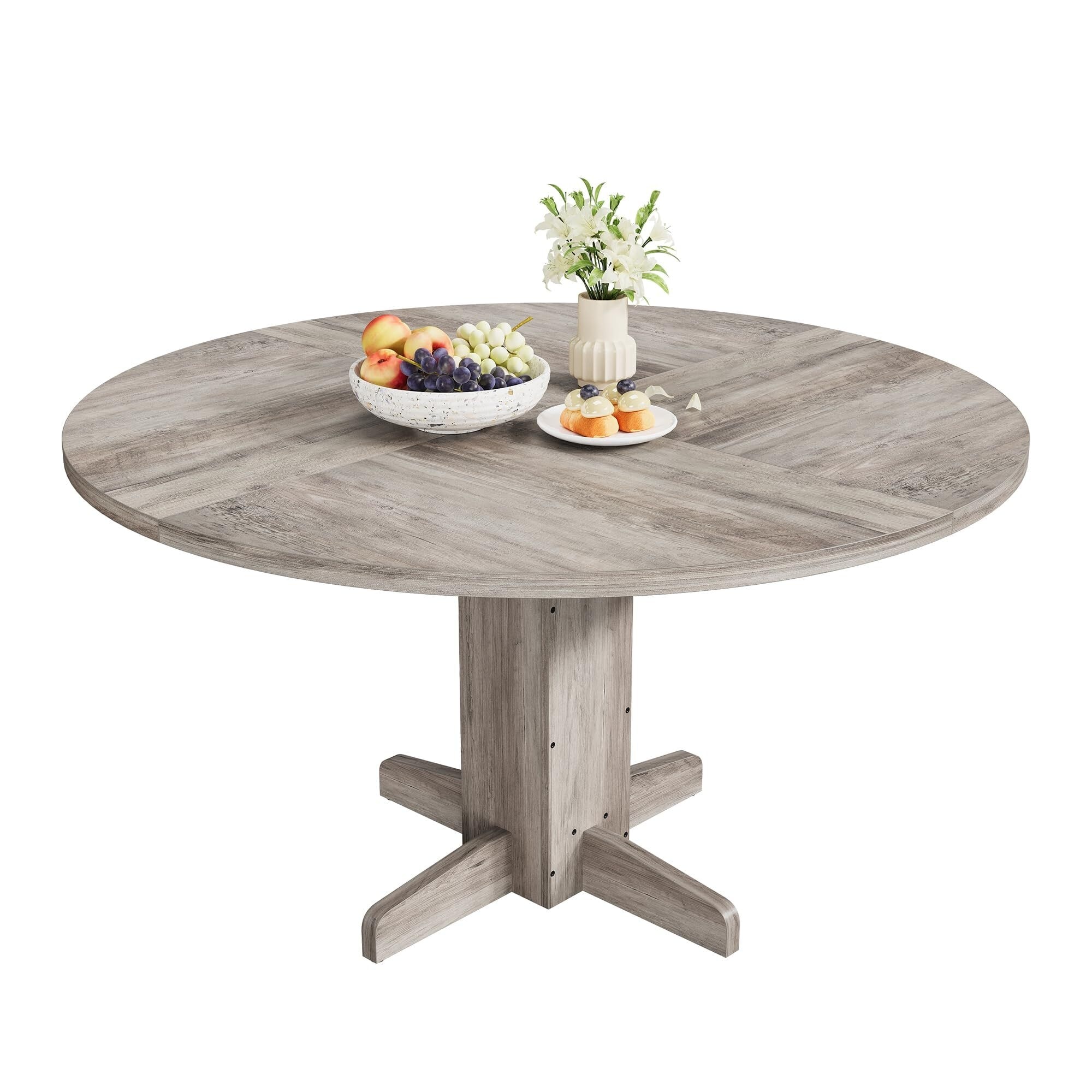 47-Inch Round Dining Table for 4-6 - Farmhouse Walnut Wood - Sturdy Pedestal Base - Perfect for Kitchen