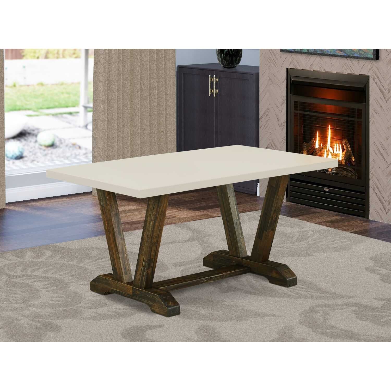 Rectangular Dining Table 36x60 Inch - Linen White Top with Distressed Wood Legs for Kitchen Dining - 36