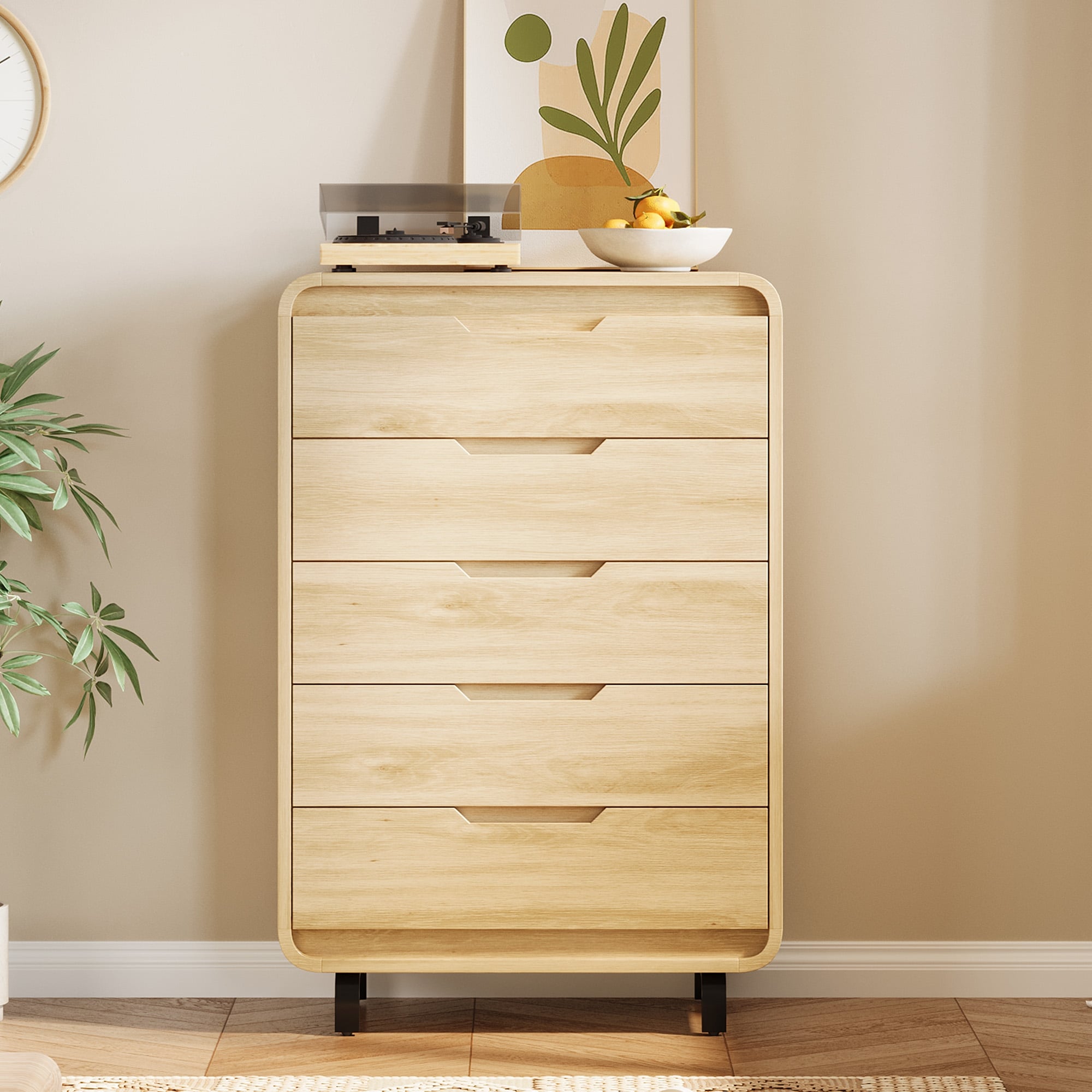 Multipurpose 5-Drawer Dresser with Integrated Handles - 29.5” Storage Cabinet for Bedroom. Media Console or Entryway