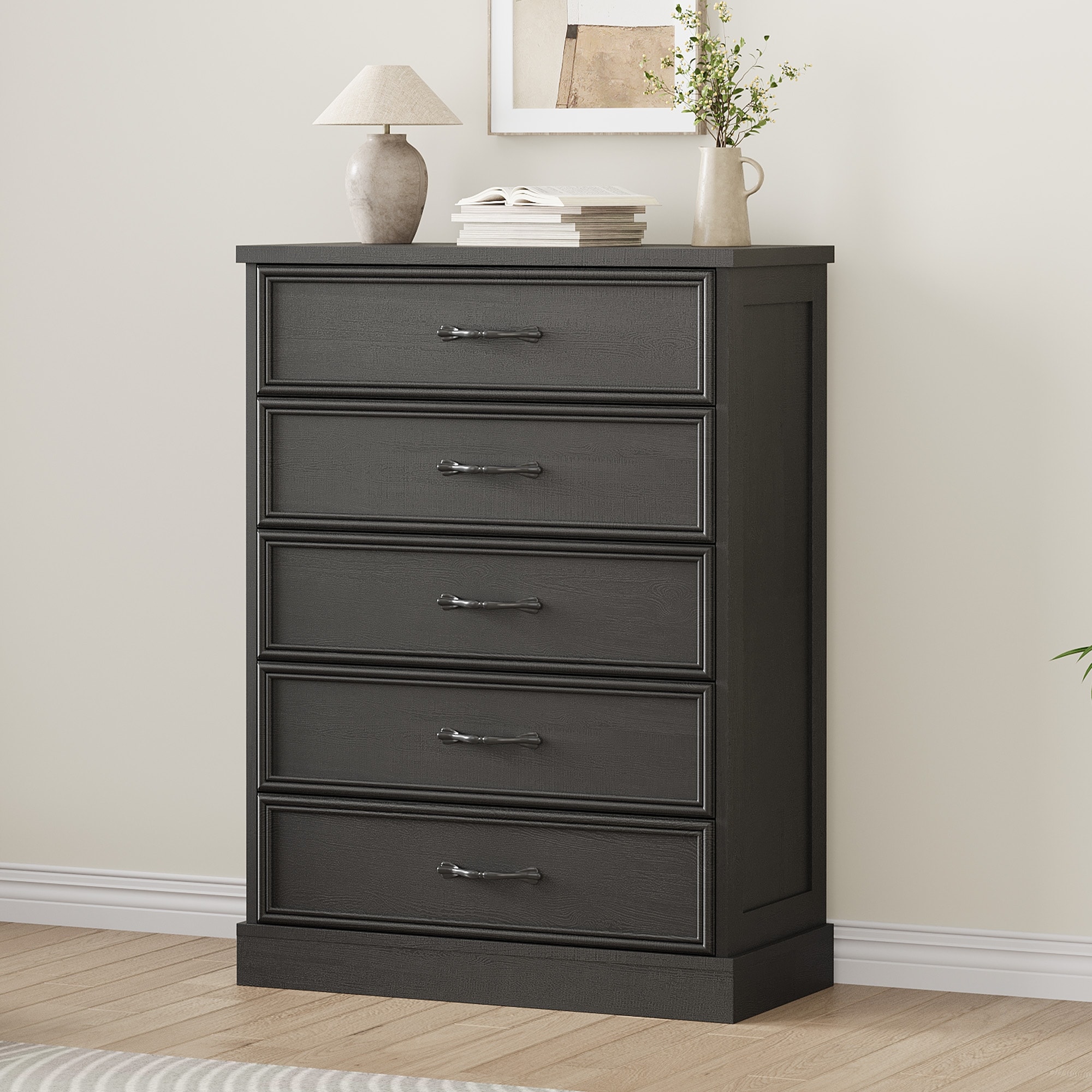 Black Storage Cabinet, 4-Drawer Tall & Freestanding Wood, Organizes Hallway Entryway Living Room