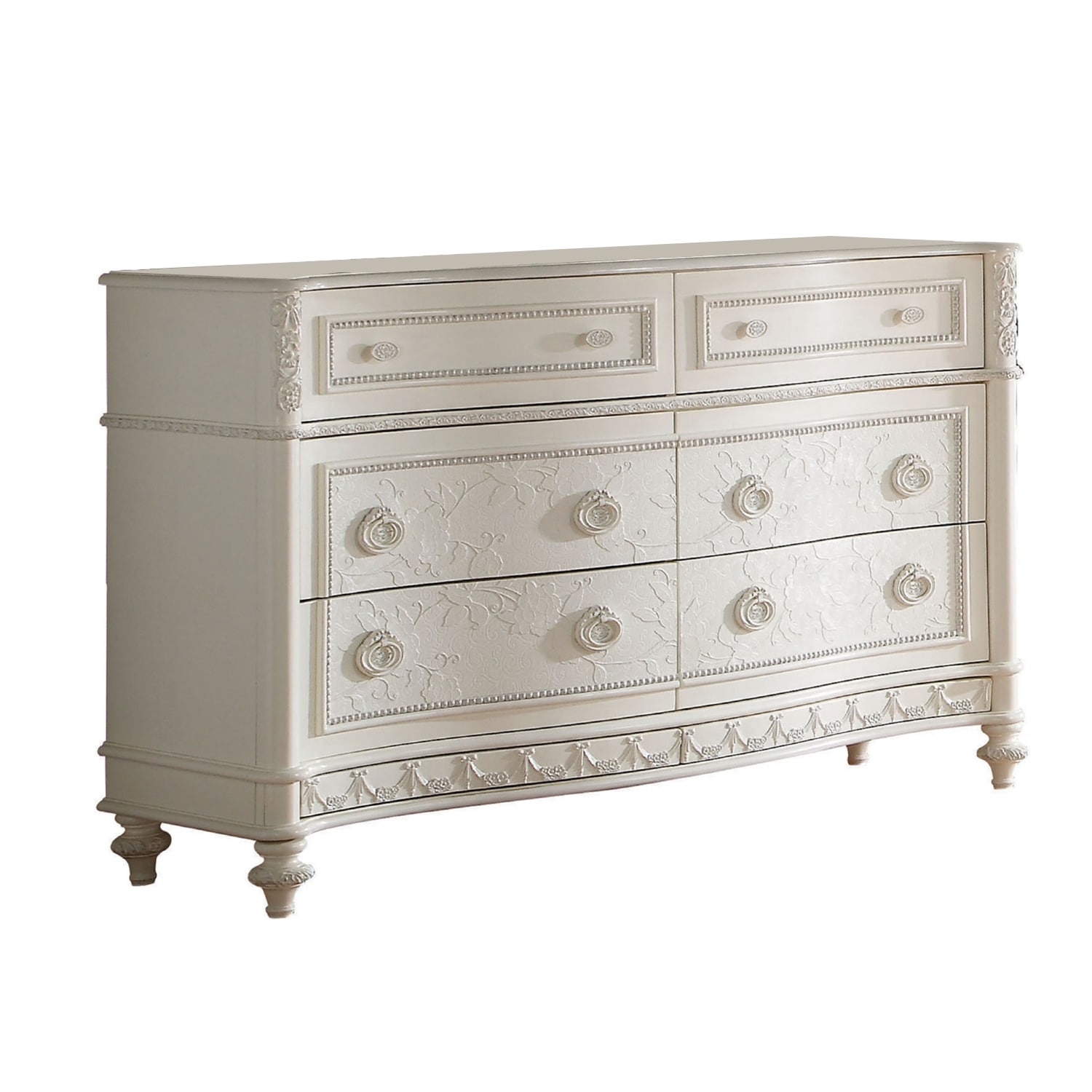 6 Drawers Wooden Dresser in Pearl White