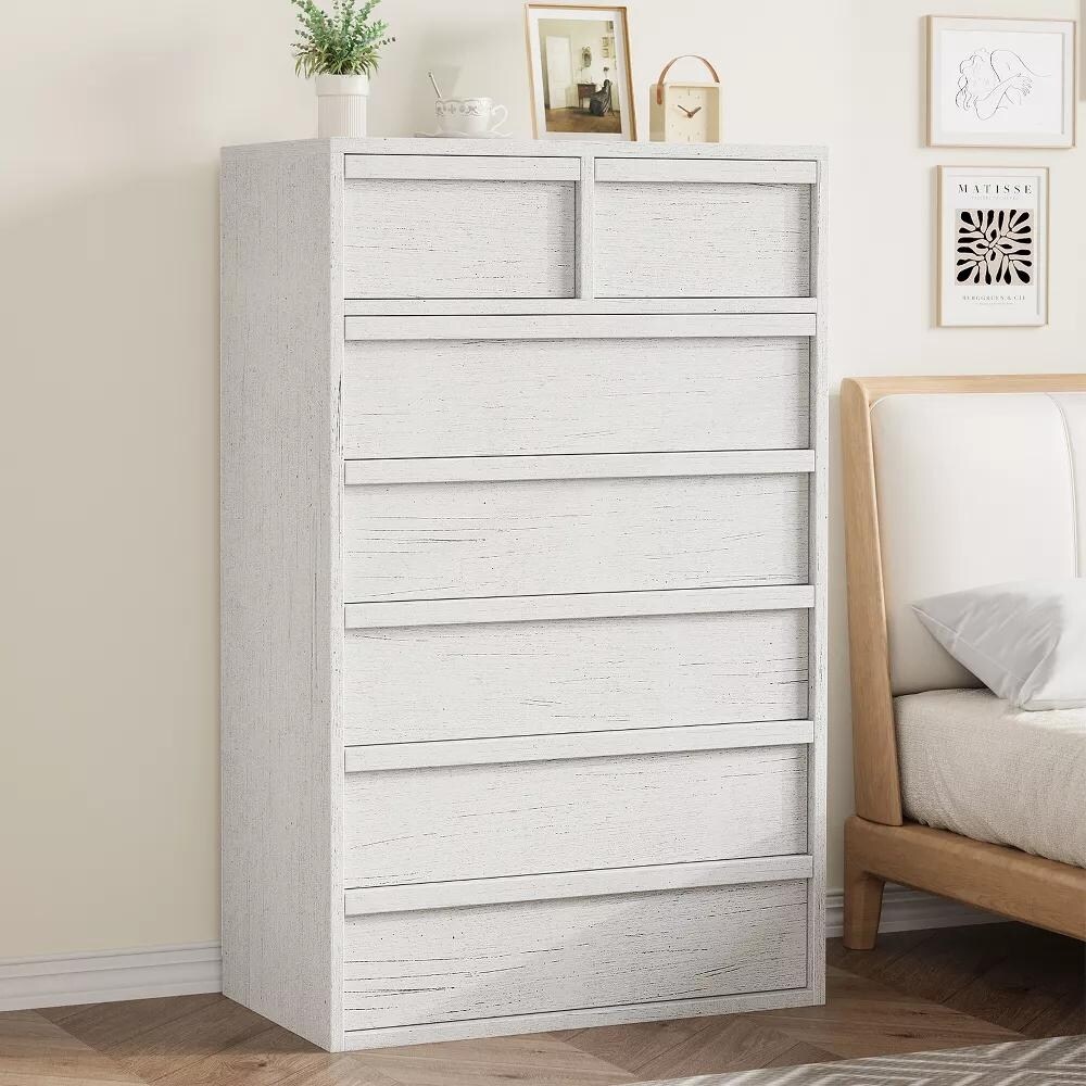 7 Drawer Dresser for Bedroom, 46" Tall Modern 7 Chest of Drawers with Large Drawers Storage, Wooden Dresser Organizer for Home