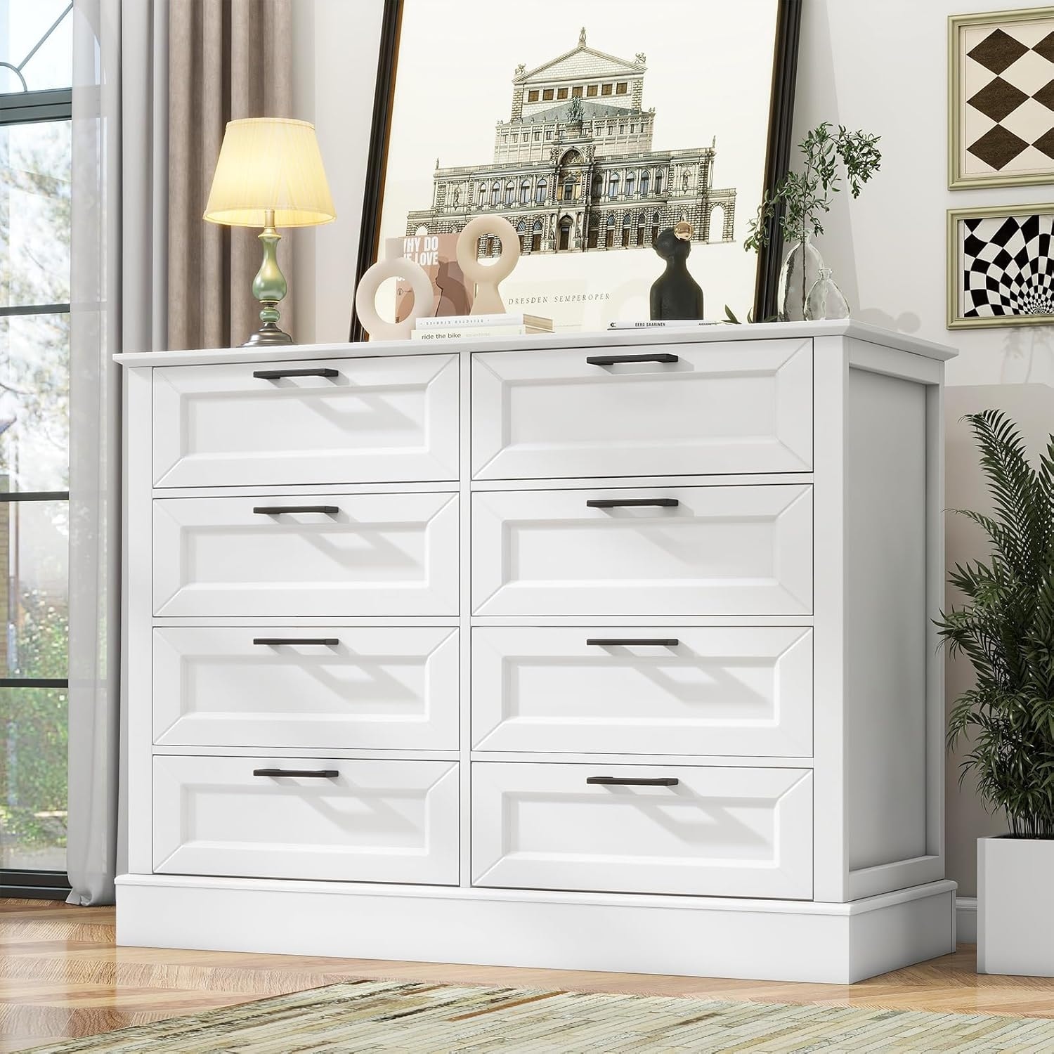 Modern Farmhouse Style White Wood Dresser with 8 Drawers for Bedroom, Living Room, Entryway