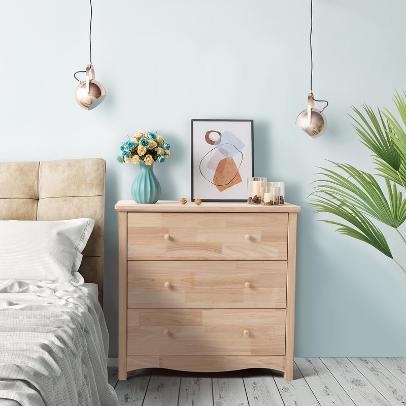 Natural Rubberwood Three-Drawer Cabinet (1pc)