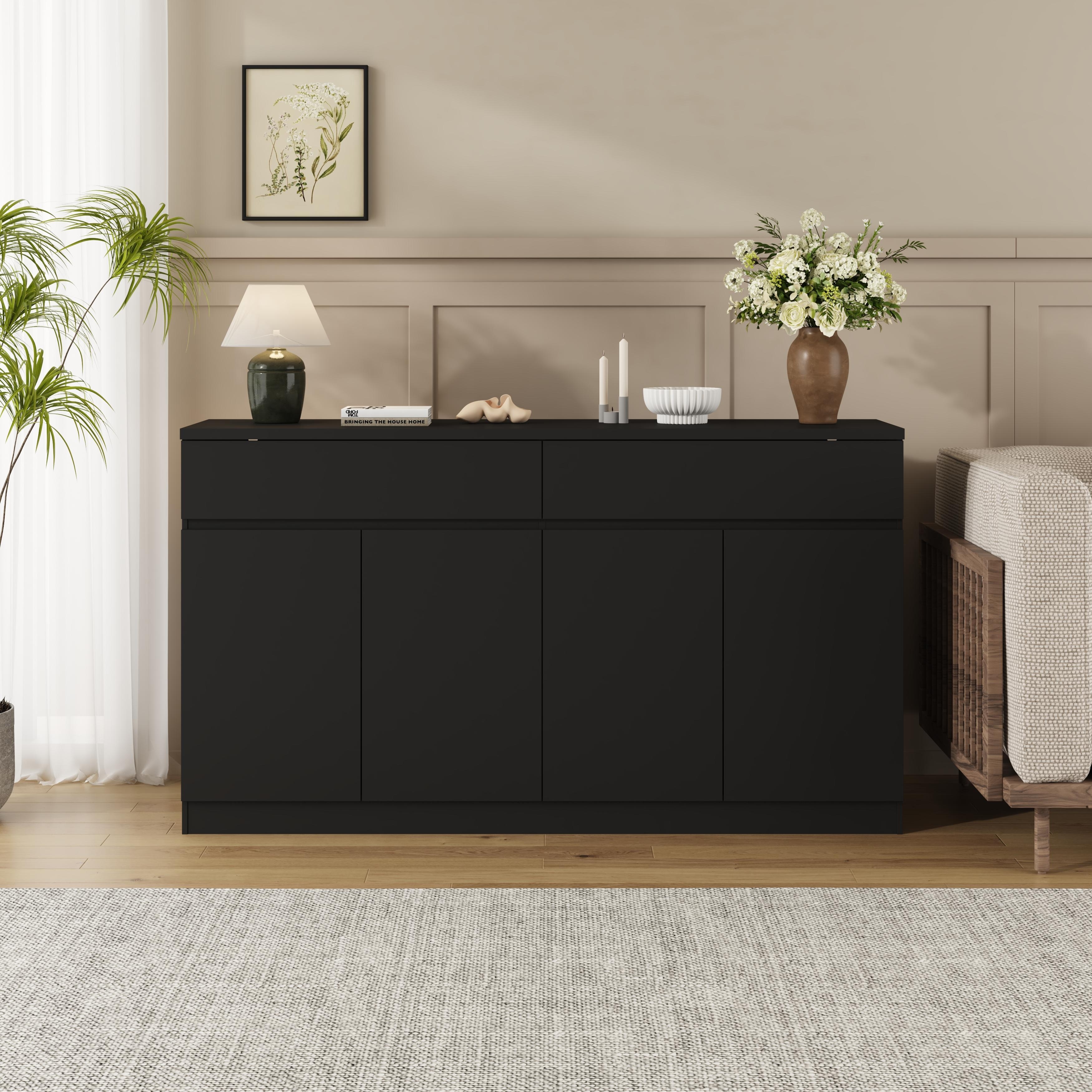 Sideboard Buffet Cabinet with Storage, 4 Doors & 2 Drawers, Wood Coffee Bar for Kitchen & Dining Room