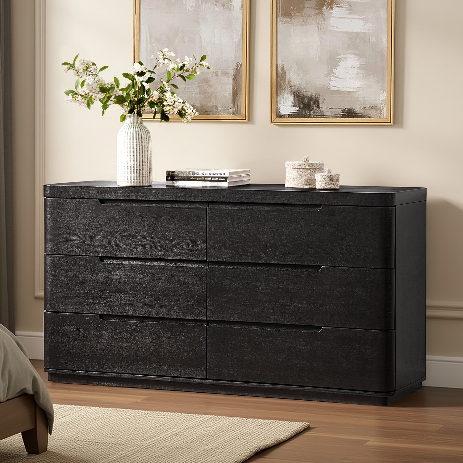 Silvius Modern 60"W 6-Drawer Oak Wood Dresser with Removable Jewelry Tray By HULALA HOME