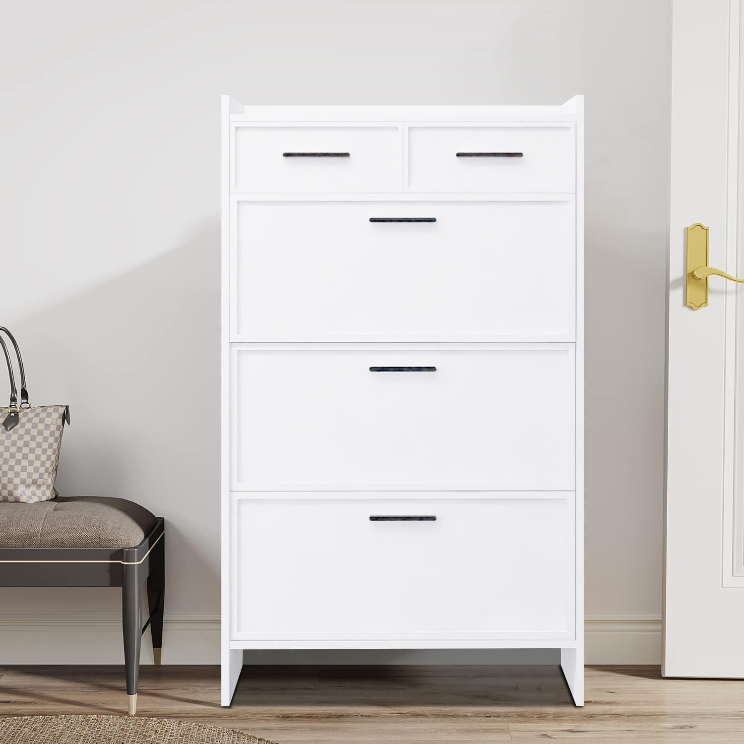 Modern Minimalist Wooden Shoe Storage Cabinet with Black Handles, White