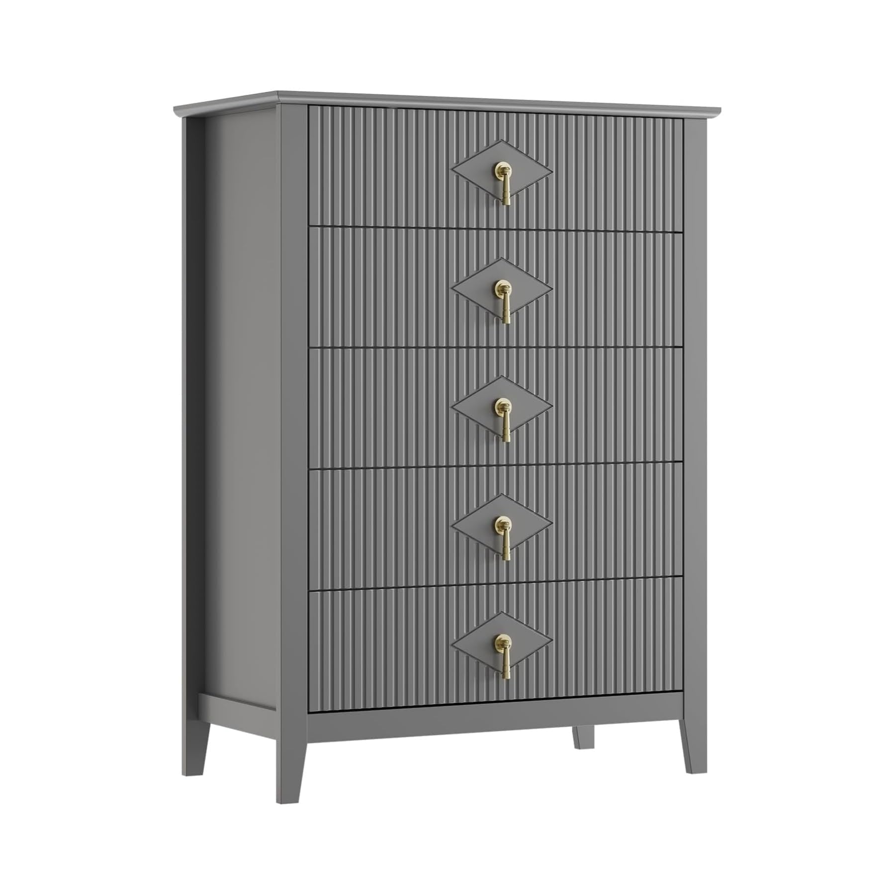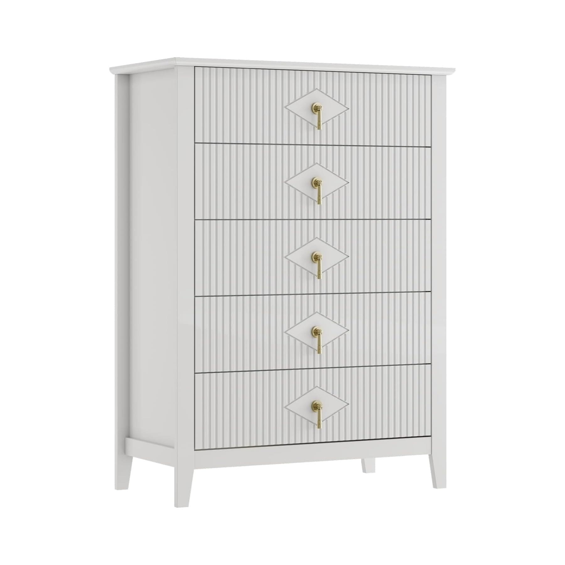 42.9" Tall Fluted 5 Drawer Dresser for Bedroom, Modern Wood Chest of Drawers Storage Organizer Cabinet